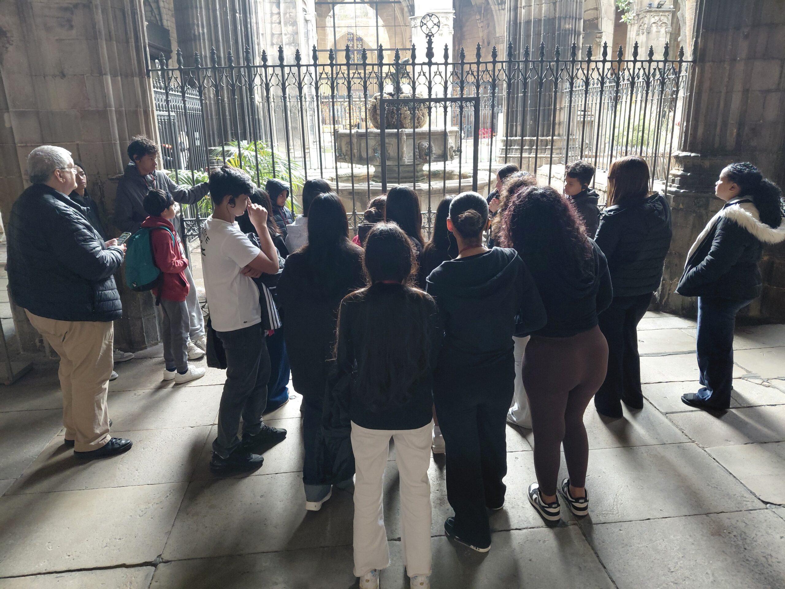 Ruta pel centre històric Feu un comentari / Per admin / 12 de desembre de 2025 / General Portada Aquest matí els alumnes de religió i d’aula d’acollida han fet una ruta pel centre històric visitant la catedral de Barcelona.