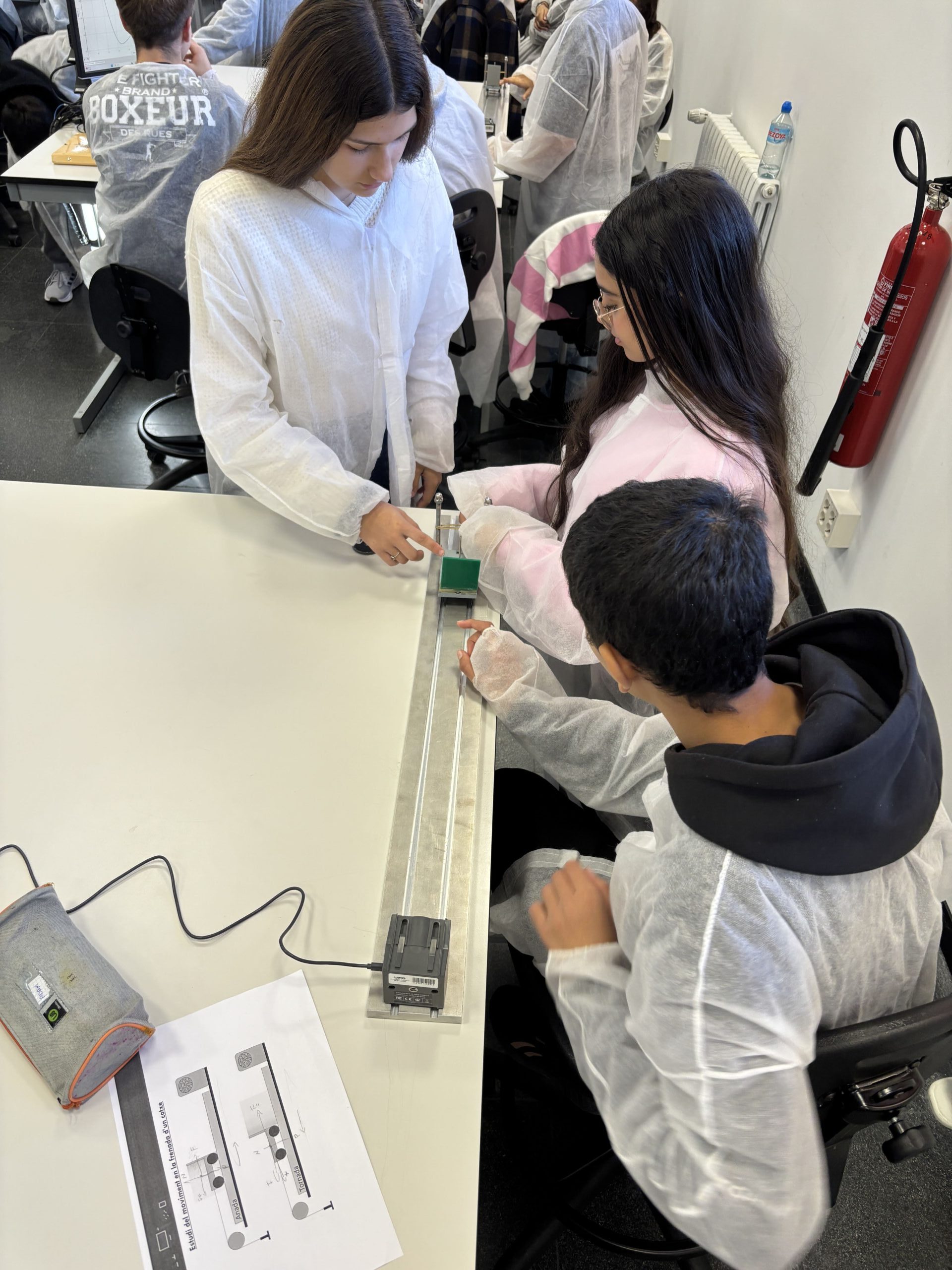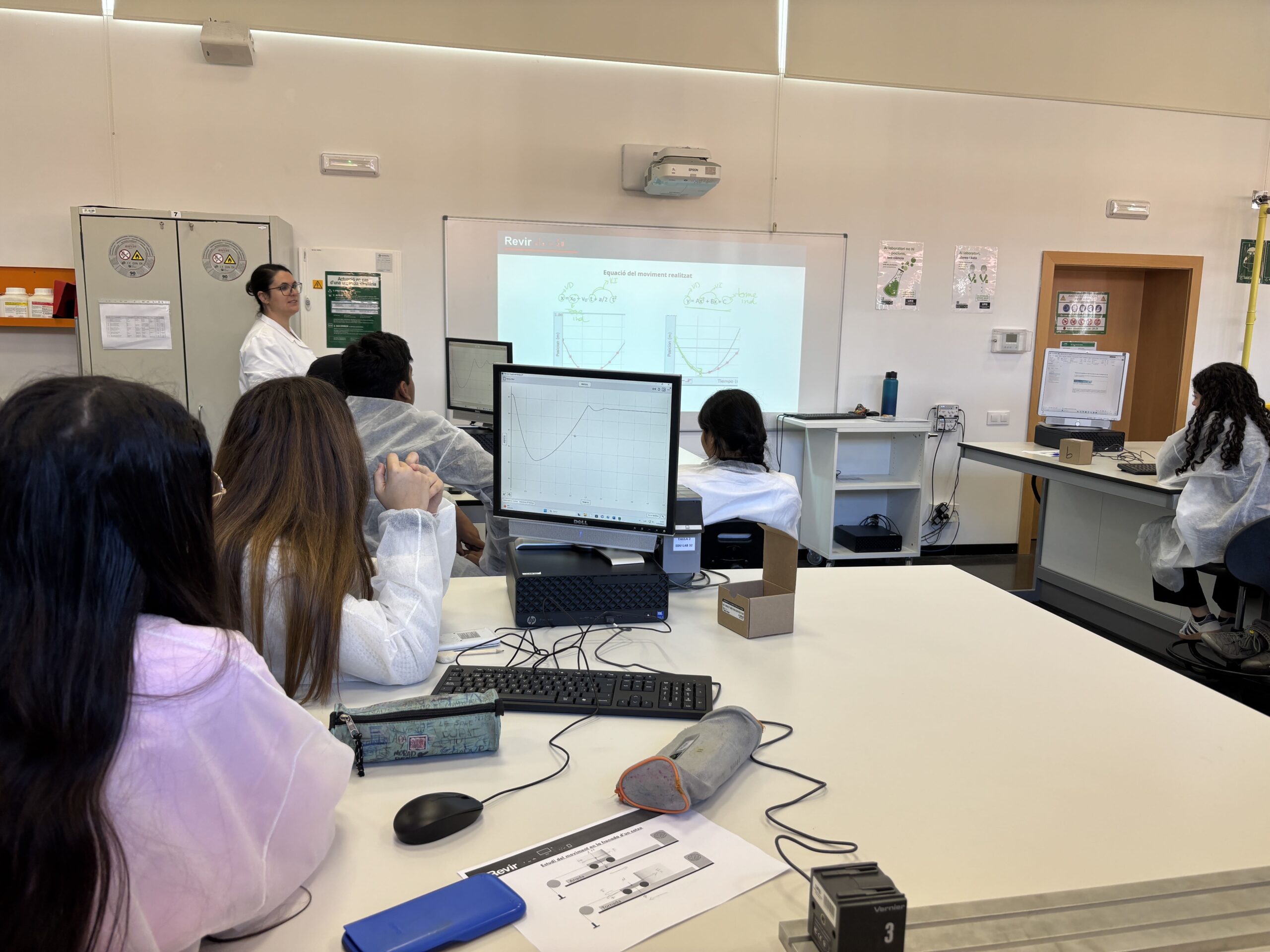 L’alumnat de 1r de Batxillerat Científic va anar a fer un taller del Projecte REVIR a la UAB. Van fer un taller de 4 hores sobre l’estudi de la frenada d’un vehicle, aplicant conceptes de cinemàtica i dinàmica. Amb un muntatge experimental i fent ús d’un sensor i programari informàtic van primer deduir i després demostrar quins són els factors que afecten la frenada d’un vehicle i perquè és important deixar distància de seguretat a la carretera.