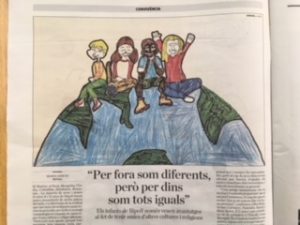 Aquí teniu els dibuixos dels alumnes seleccionats: Christian Zapanta, el Kaylord Castillo, l’Ismael Benaouda, la Fenina Doctolero, la Cecilia Raimundo i l’Irene Salazar, que van fer el dia abans a la mateixa redacció del diari. També va ser seleccionat i publicat el microrelat del Sameer Ruksar “Un noi del Pakistan”.