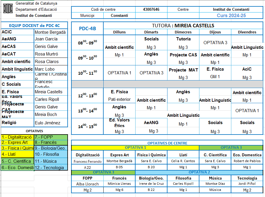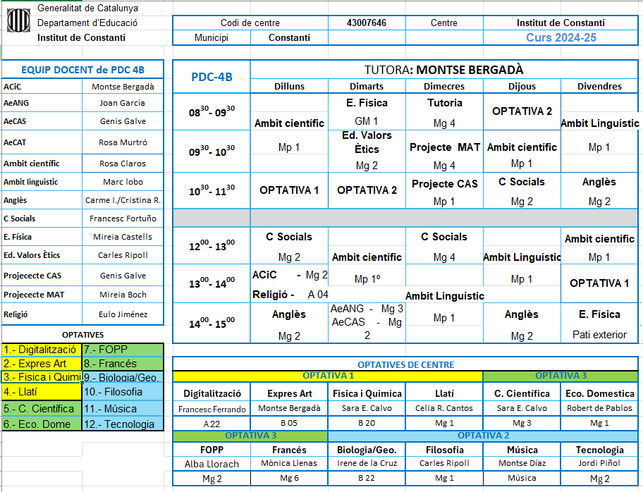 Horari 4t ESO Projecte de diversificació curricular, curs 2024 – 2025 Feu un comentari / Per admin / 30/08/2016 / ESO 4 PDDC