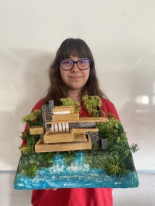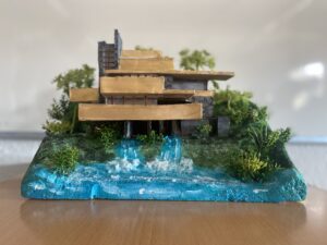 A la Sara Laguna li va tocar la casa Kaufmann (coneguda també com a casa de la cascada), l’obra més representativa de l’organicisme arquitectònic. Per fer la seva exposició va preparar aquesta impressionant maqueta que ens va ajudar a entendre millor les característiques principals d’aquesta construcció.