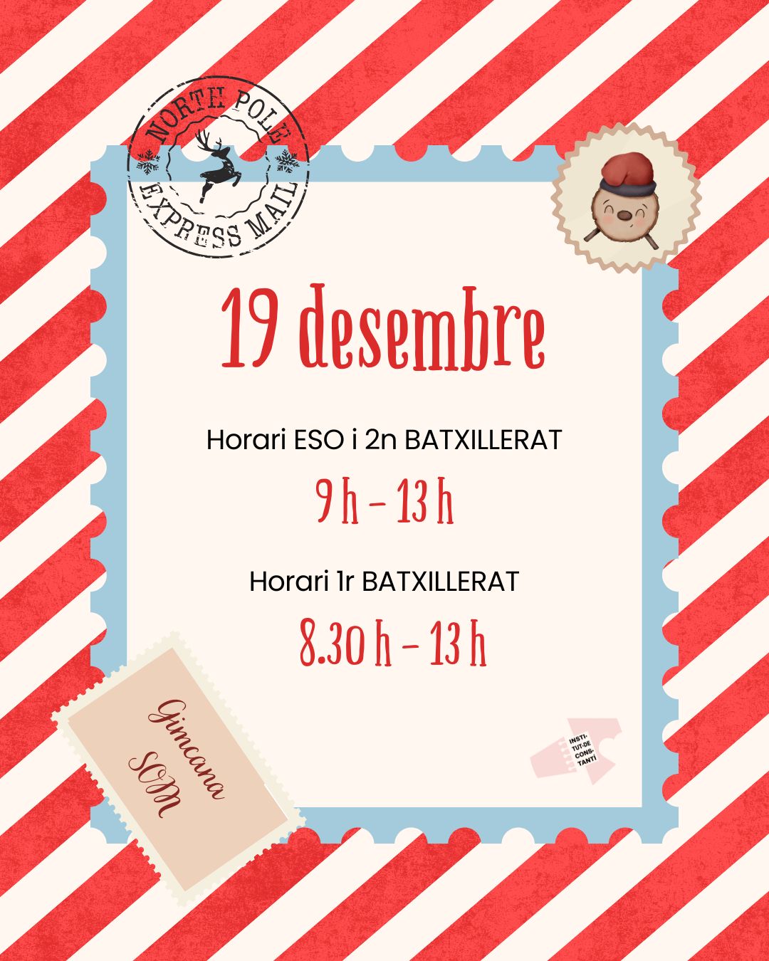 🎉El proper divendres 19 de desembre és l’últim dia lectiu de l’any i ho celebrarem amb la GIMCANA SOM, preparada per l’alumnat de 1r de batxillerat.
