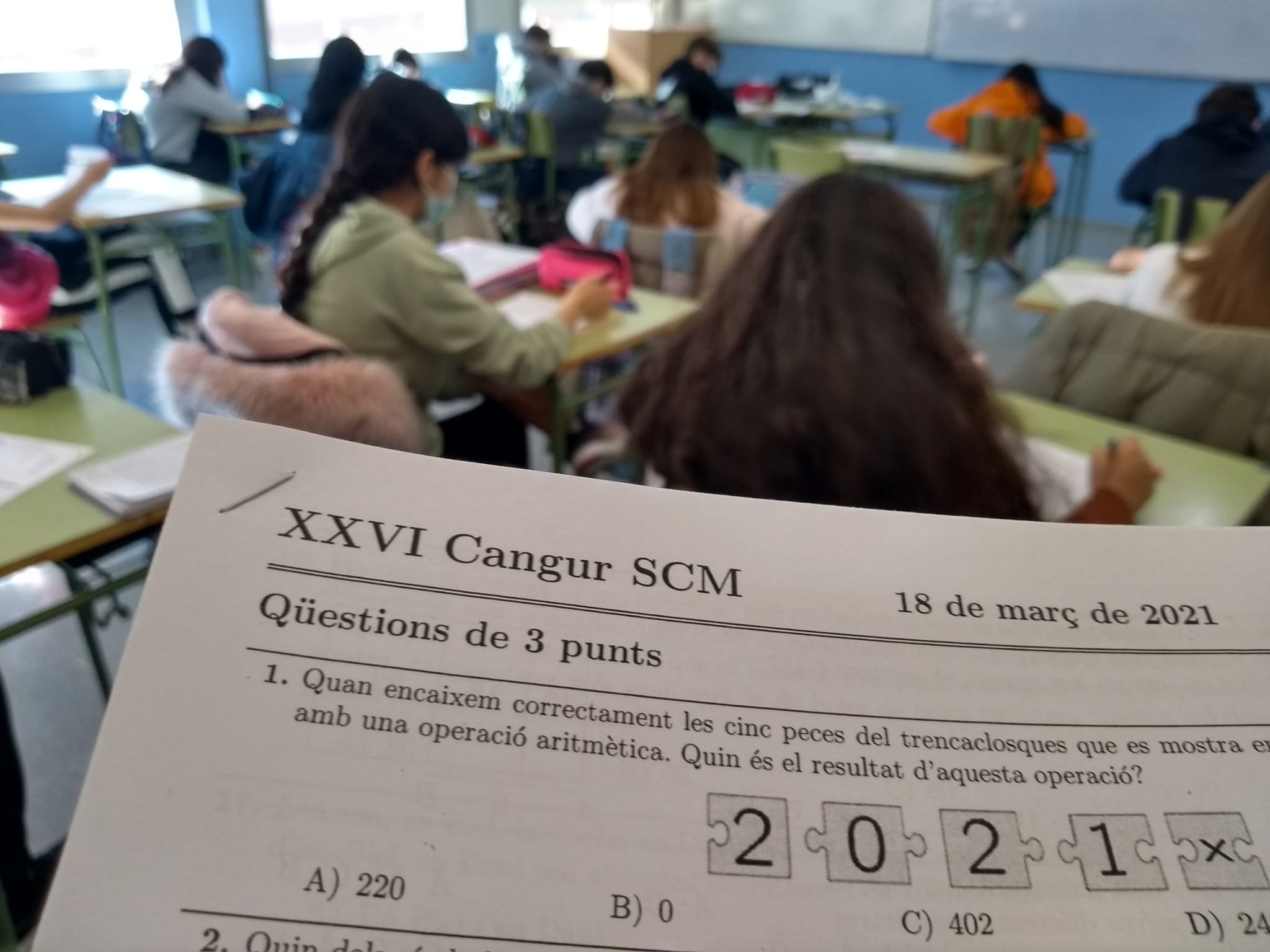 Participació a les Proves Cangur Feu un comentari / Per admin / 19/03/2021 / General Portada L’alumnat de diferents grups d’ESO de l’institut ha participat en una nova edició, aquest any s’arribava a la vint-i-sisena, de les Proves Cangur, concurs matemàtic coordinat per la Societat Catalana de Matemàtiques.