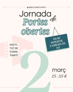 El pròxim dia 2 de març realitzarem la jornada de portes obertes a les 15:35 h. US ESPEREM!