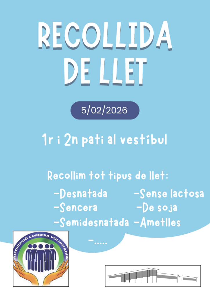 L’Institut Corbera organitza, a través de la matèria de 3r d’ESO Serveis Comunitaris, un recapte de llet en col·laboració amb el Rebost Solidari de Corbera, amb l’objectiu d’ajudar famílies del municipi que ho necessiten.