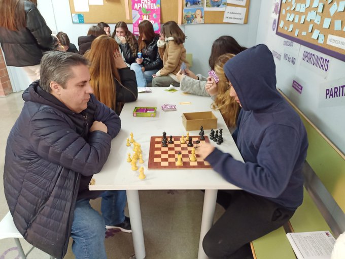 A l’hora del pati també es pot saltar a corda o jugar a jocs de taula, gràcies a l’alumnat que està fent el servei comunitari Dinamització del pati. .