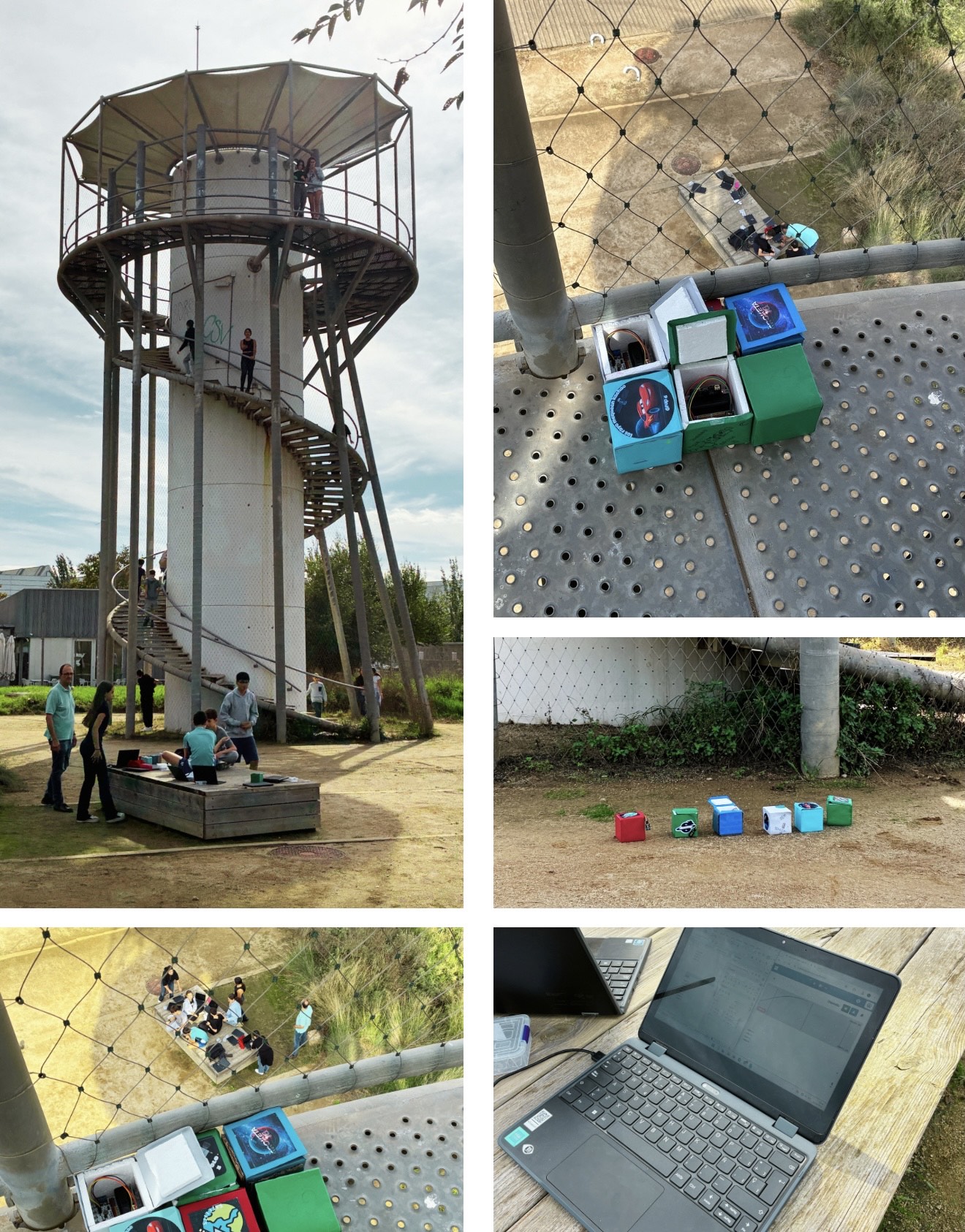 Dilluns passat els alumnes del 2nC d’ESO van anar a la torre-mirador del parc del riu amb els seus “cubesats”. L’objectiu era mesurar el canvi en la pressió atmosfèrica, dalt la torre i a la base. D’aquesta manera van poder deduir l’alçada de la torre. L’activitat forma part del projecte “Micro:Sat”.