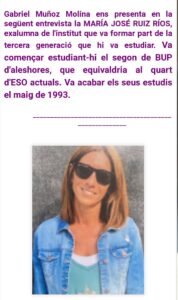 El Gabriel Muñoz de 1r BTX ens presenta la María José Ruiz, Diplomada en turisme, que ha vist com la pandèmia ha afectat la feina per la qual s’havia format però que alhora l’ha fet obrir-se a noves perspectives. Podeu llegir l’entrevista aquí.