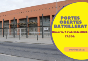 Dimarts 7 d’abril a les 17:30h farem la jornada de portes obertes presencials de Batxillerat. Es farà una reunió informativa i una visita al centre.