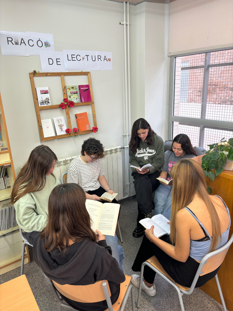 La professora de Llatí i de Grec de l’institut, la Rocío Poyato, ha preparat a la biblioteca del centre un racó molt agradable i confortable per poder llegir i gaudir plenament de la lectura. Les alumnes de 2n de batxillerat de Literatura Catalana ja l’han estrenat i estan encantades! Animeu-vos a fer-lo servir!