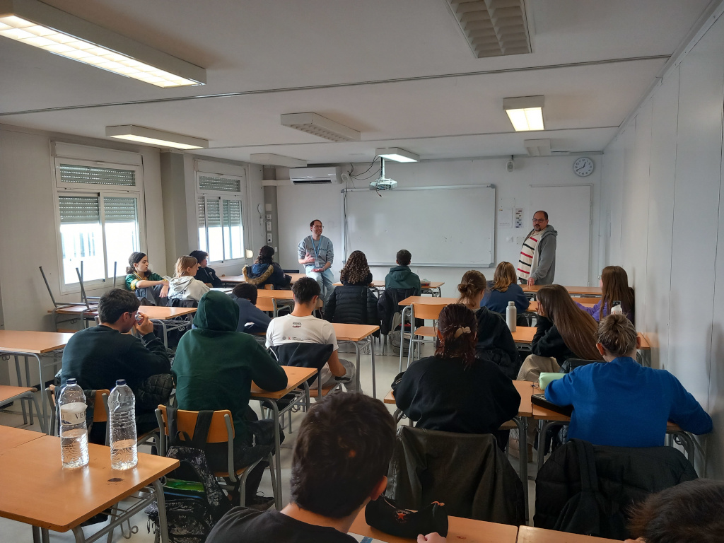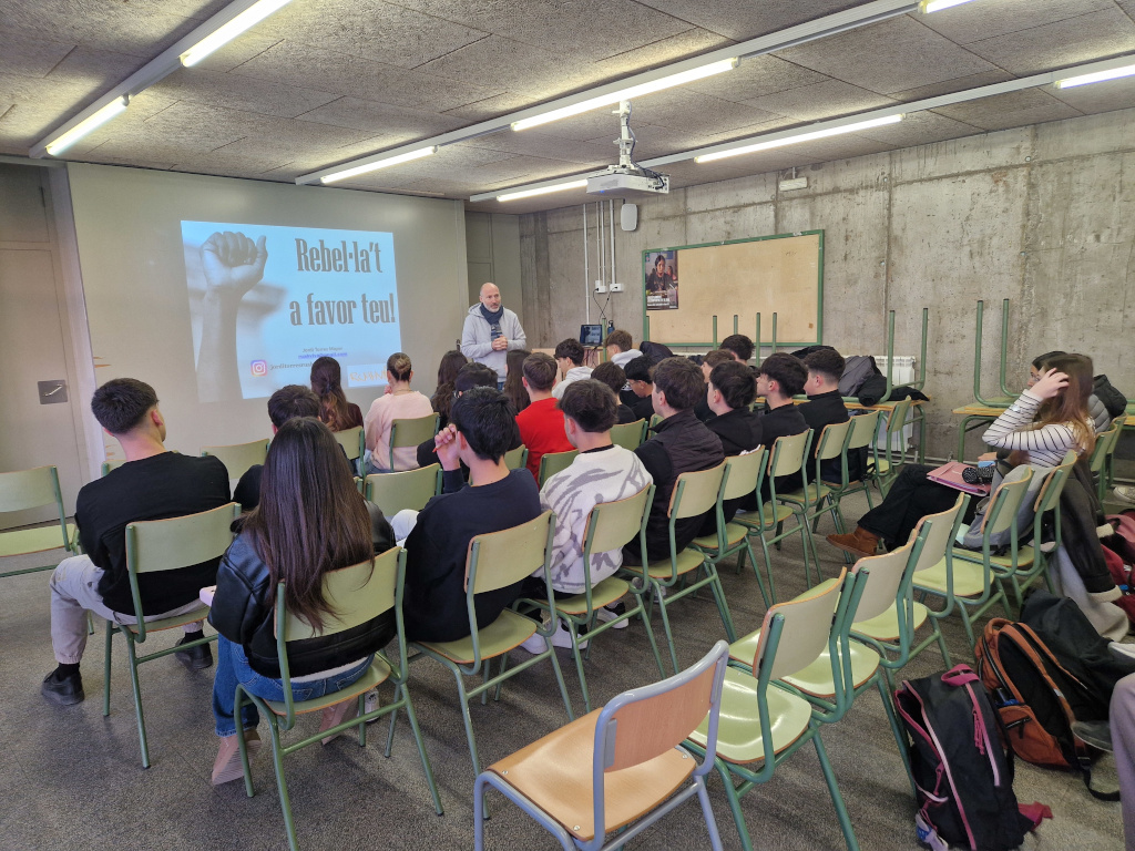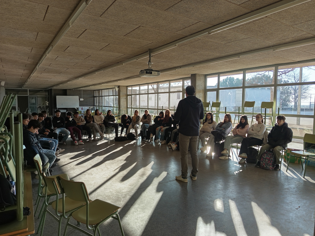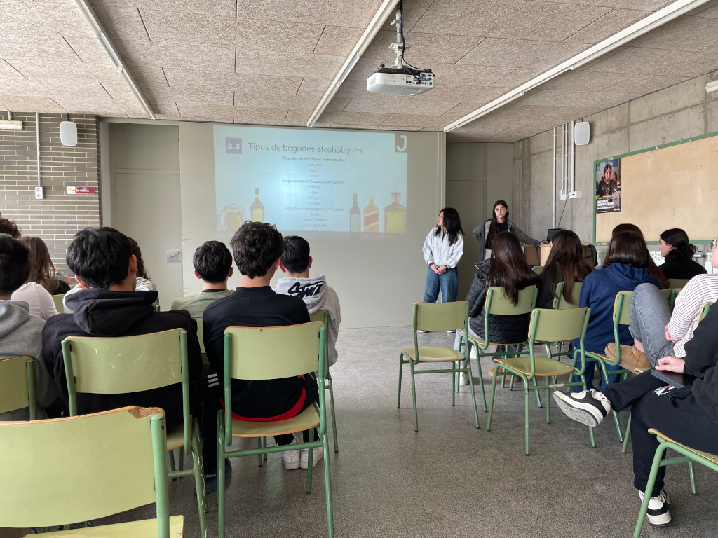El passat dijous, 27 de febrer, les exalumnes del nostre Institut, Belén Montaño i Txell Muñoz, que són estudiants del cicle formatiu Auxiliar d’Infermeria de l’institut Joviat, han relitzat una xerrada per als alumnes de 3r d’ESO sobre la prevenció del consum de begudes energètiques i alcohol. Després d’una presentació teòrica, l’alumnat ha fet un Kahoot per consolidar el que han après.