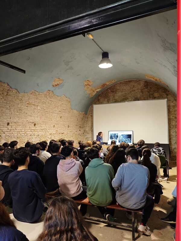 Imatges escoltant l’Assumpta Montellà a l’interior del Castell de Sant Ferran, explicant la importància de la Maternitat d’Elna i qui va ser Elisabeth Eidenbenz.