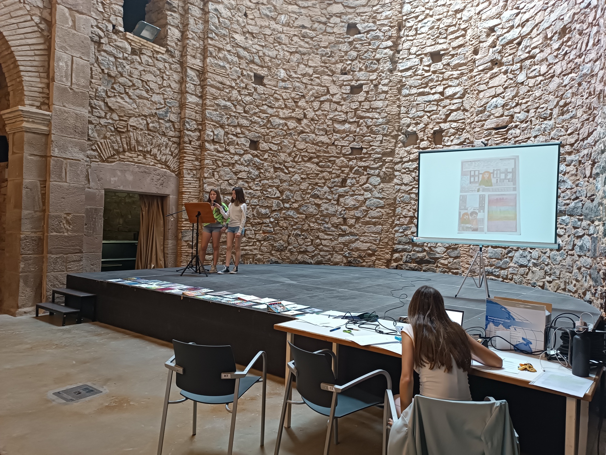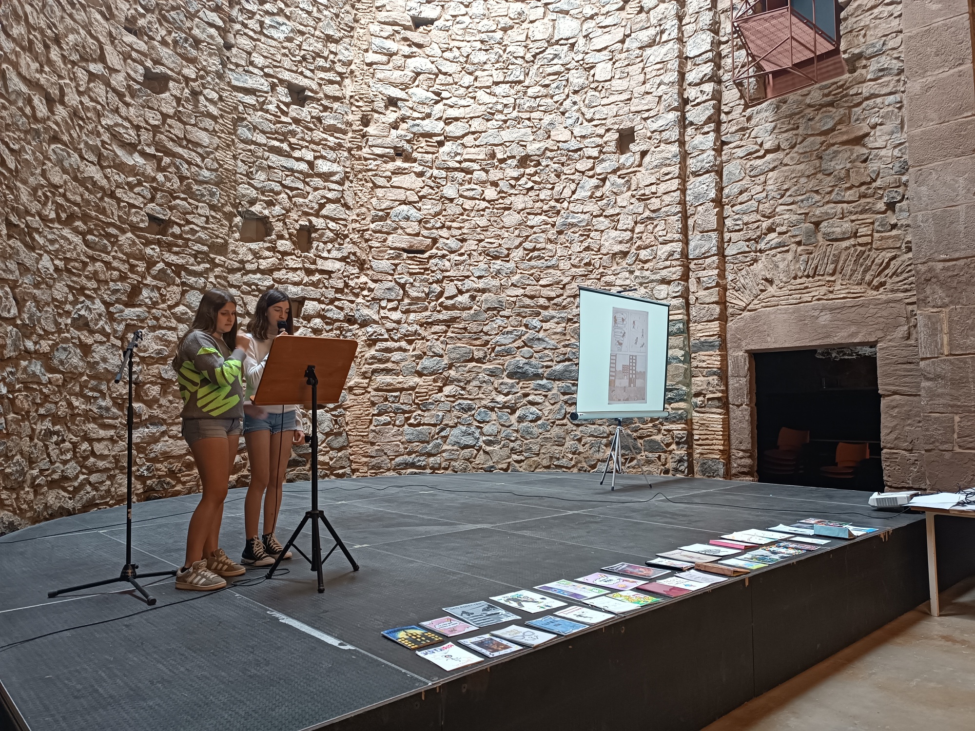Finalment, per la diada de Sant Jordi, les autores dels còmics guanyadors de cada classe van poder-los presentar i llegir a part de l’alumnat de l’Escola Riu d’Or, que ens va venir a visitar al Convent.