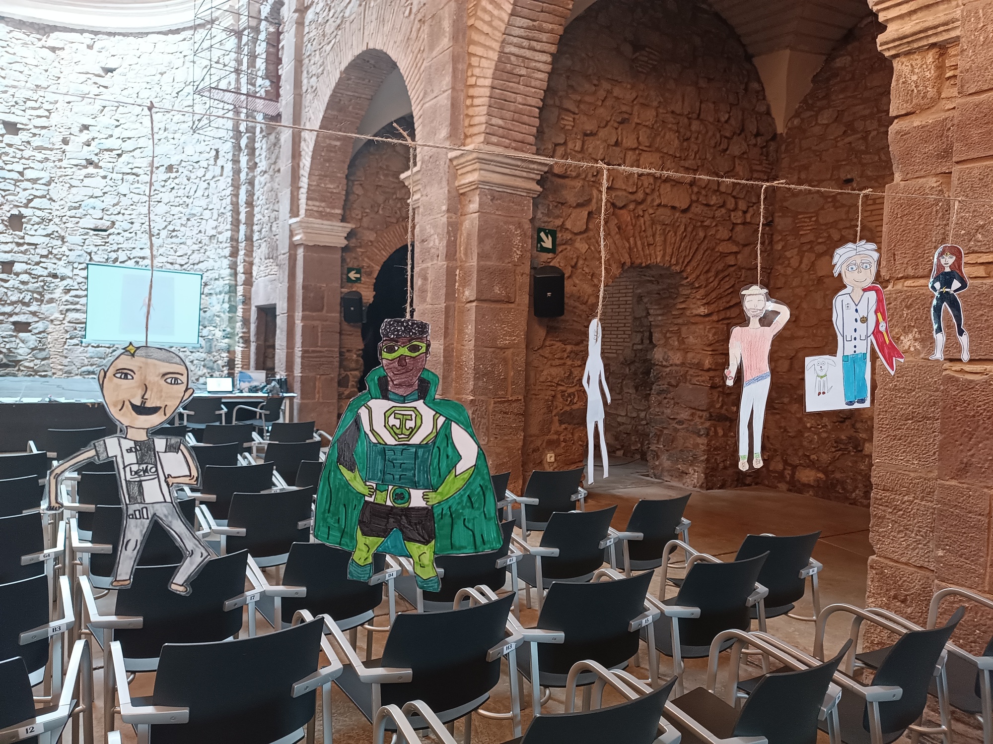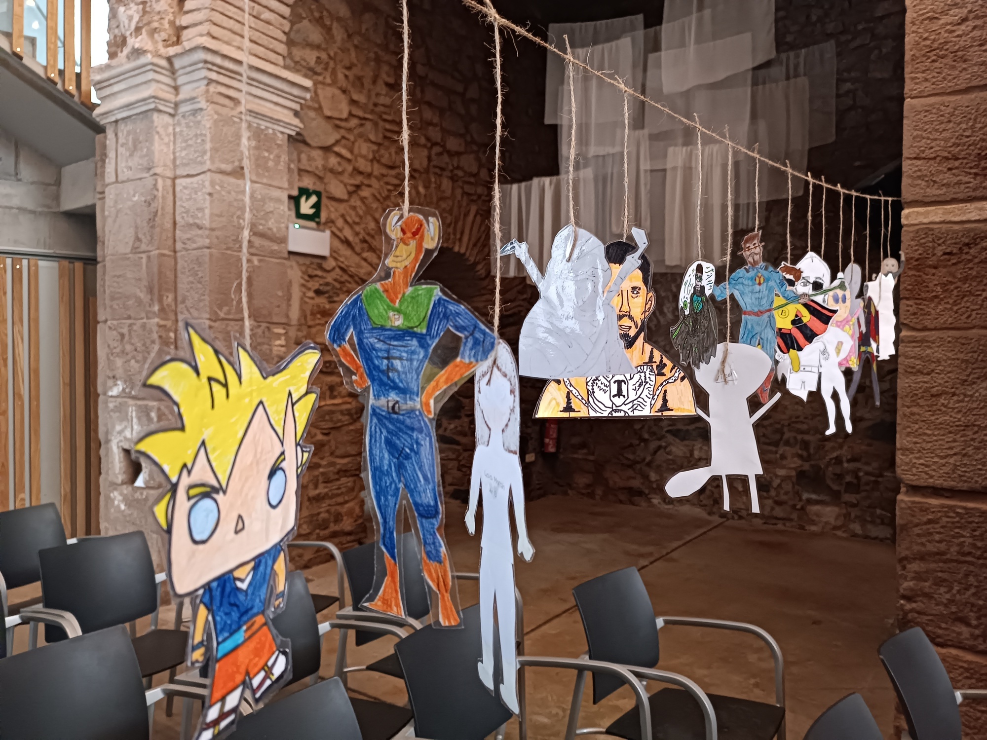 Primerament, des de la matèria de Llengua catalana i literatura, cada grup va engegar el procés d’escriptura per crear un text narratiu -una història- en què el protagonista fos un superheroi o una superheroïna que hagués de salvar la humanitat d’alguna catàstrofe. Seguidament, calia donar vida al protagonista i dotar-lo de superpoders per a portar a terme la seva missió. En segon lloc, des de la matèria de Visual i Plàstica van transformar la història seguint el format d’un còmic, una feina molt laboriosa, però que ha donat uns resultats molt interessants. I, com a cirereta del pastís, individualment van dibuixar i retallar el superheroi o superheroïna tenint en compte la descripció que prèviament n’havien fet.
