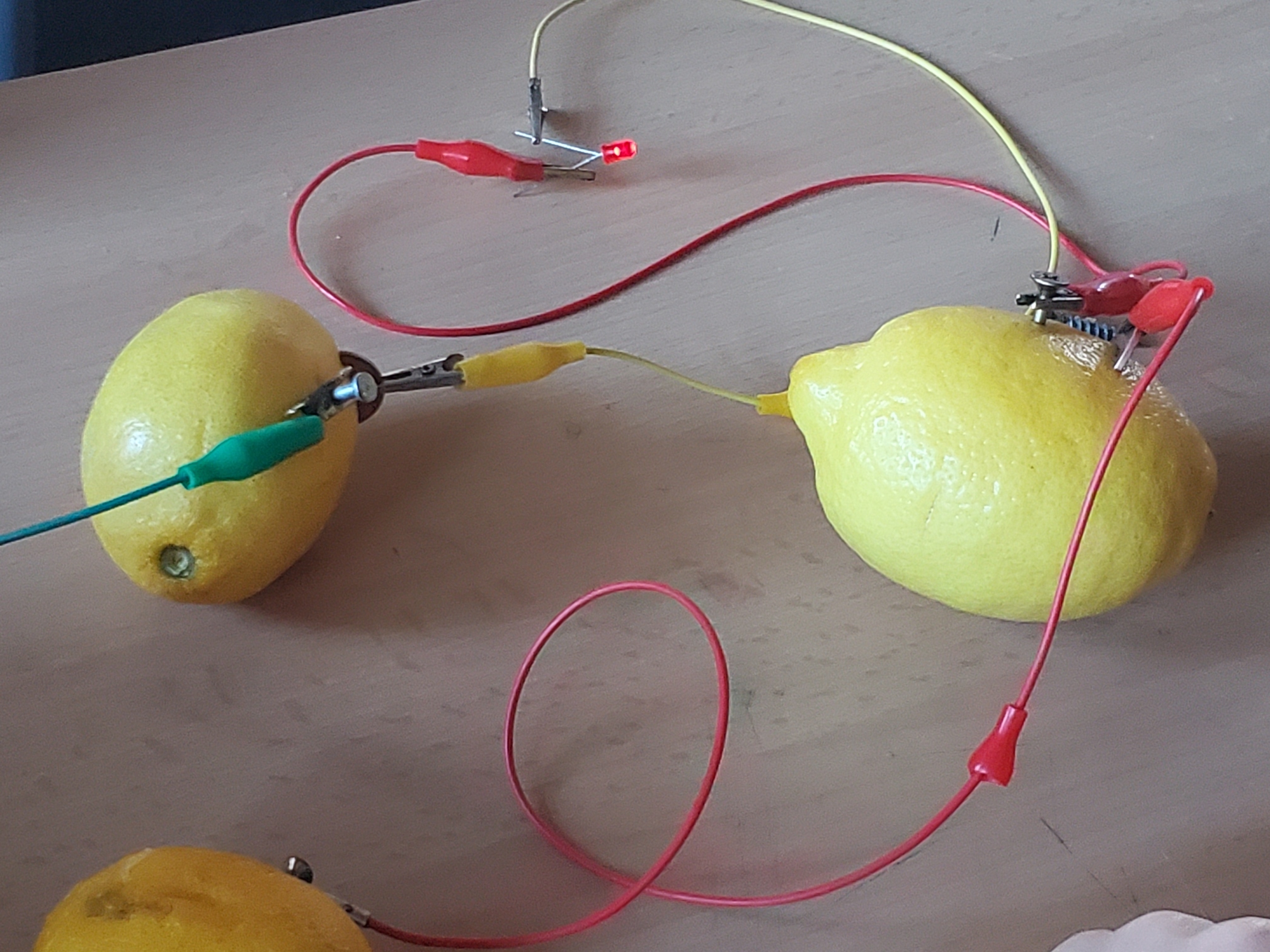A més, vam posar la teoria en pràctica amb un experiment molt especial: vam generar electricitat amb llimones, monedes i claus! Una manera divertida i sorprenent d’aprendre ciència i sostenibilitat alhora.