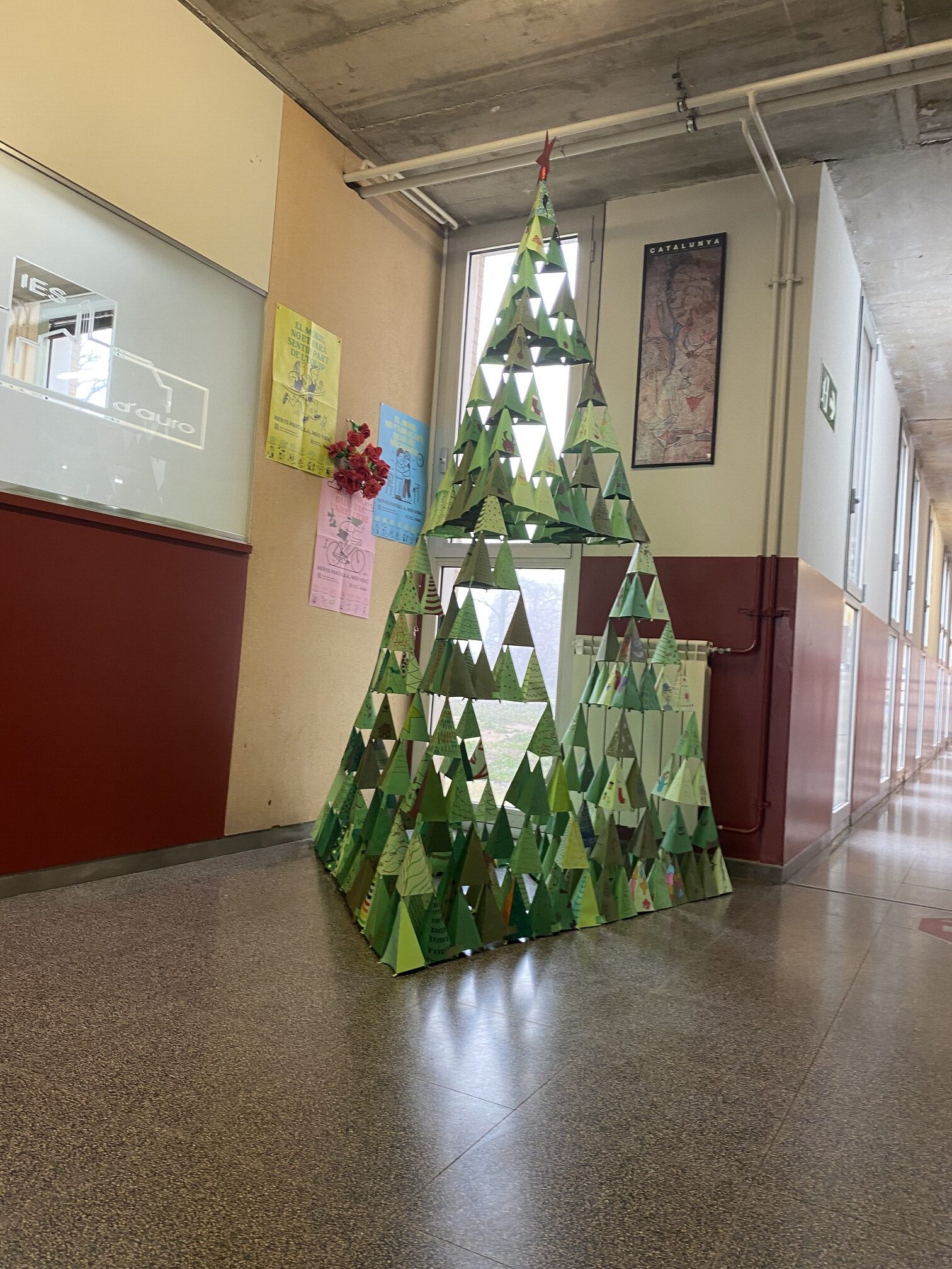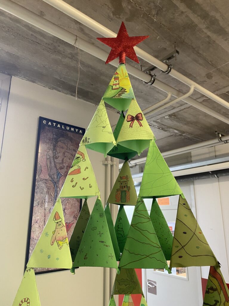 Els alumnes de 2n ESO han construït aquest arbre de Nadal. La construcció geomètrica d’aquest arbre de Sierpinski els va permetre no només entendre l’estructura de Fractal (un concepte teòric molt complicat) sinó també aprendre a treballar en equip. Es van necessitar 256 mòduls per a la construcció d’aquest arbre tan bonic.