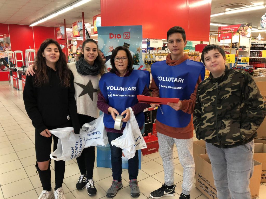 Els alumnes de 4tA juntament amb els avis de Can Ponac han anat de voluntaris als supermercats del poble. Els voluntaris han  informant als clients dels supermercats de la  importància de la campanya i els han animat a participar.