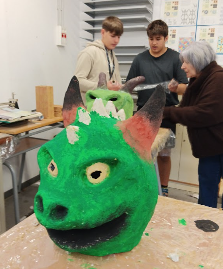 En Xevi Vigué, com a representant de la colla dels Dracs de Sant Hipòlit, ens ha visitat per veure el resultat de l’encàrrec que ens va fer: construir els capgrossos de dracs per un acte que es farà el mes d’abril.