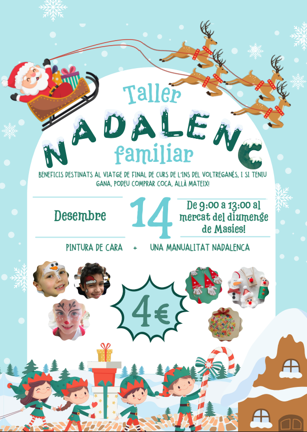 El proper 14 de desembre al mercat, els alumnes de 4t organitzen un taller ben especial: pintacares i manualitats nadalenques! Us animem a venir en família i passar una bona estona amb els més petits. Segur que s’ho passaran genial!