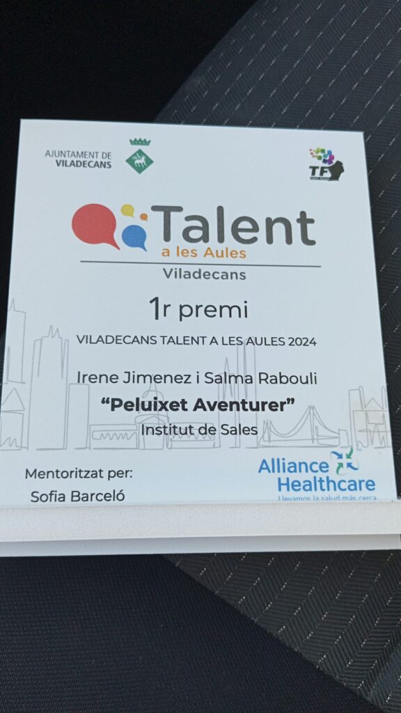 Aquesta edició del projecte Talent a les aules 2024 és la primera que se celebra exclusivament a Viladecans. Però malgrat això, es van presentar inicialment gairebé 200 idees de negoci. El dimecres 29 de maig va tenir lloc l’entrega de premis. El projecte guanyador del 1r premi (un viatge de 5 dies a San Francisco) ha estat “Peluixet Aventurer”, un peluix interactiu dissenyat especialment per a menors amb autisme, que compta amb diverses funcionalitats per oferir suport emocional, estimulació sensorial i entreteniment adaptat a aquests nens i nenes. Aquesta idea de negoci ha estat creada per dues alumnes de l’Institut de Sales: Irene Jiménez i Salma Rabouli, tutoritzada per la professora d’economia Maryam Mouagni i mentoritzada per l’empresària Sofia Barceló de la empresa Alliance Healthcare.