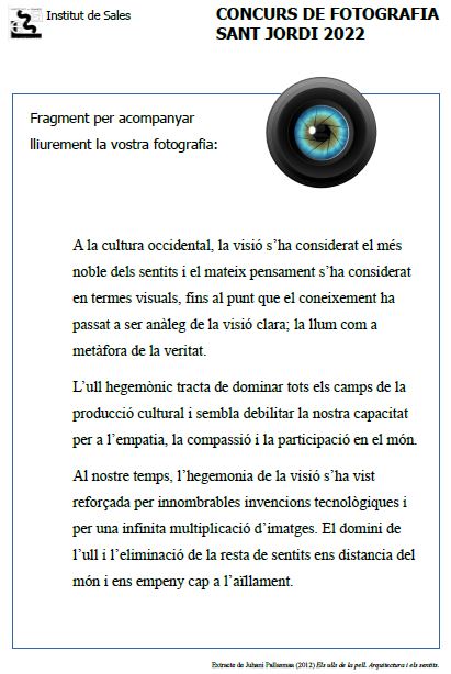 Aquí teniu els detalls del concurs de Fotografia de Sant Jordi. Llegiu el fragment proposat i feu les fotografies que penseu que millor expressen el sentit del text.