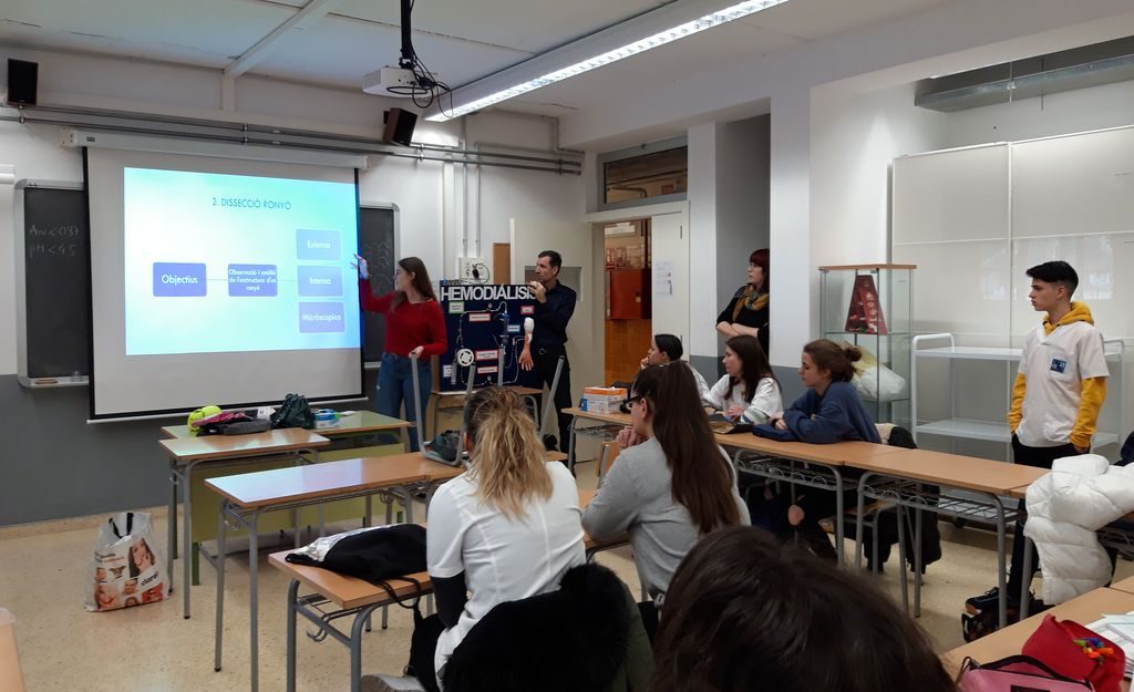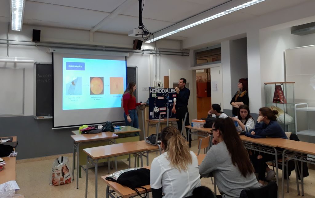La Clara, ens va explicar amb molt detall, el seu treball referent a la hemodiàlisi i va portar una maqueta, molt ben confeccionada, que tenia moviment i ens va acabar d’ajudar a entendre millor el funcionament i el fonament