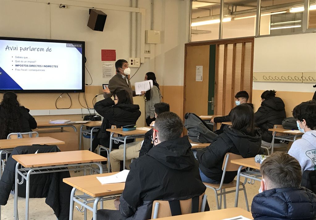 L’alumnat de 4t d’ESO van realitzar la segona i última sessió d’educació financera de la mà de l’EFEC. Aquest segon taller, titulat “Els impostos i tu” els va ajudar a entendre la importància dels impostos i el funcionament d’aquest aspecte financer que tothom a la societat ha de conèixer.