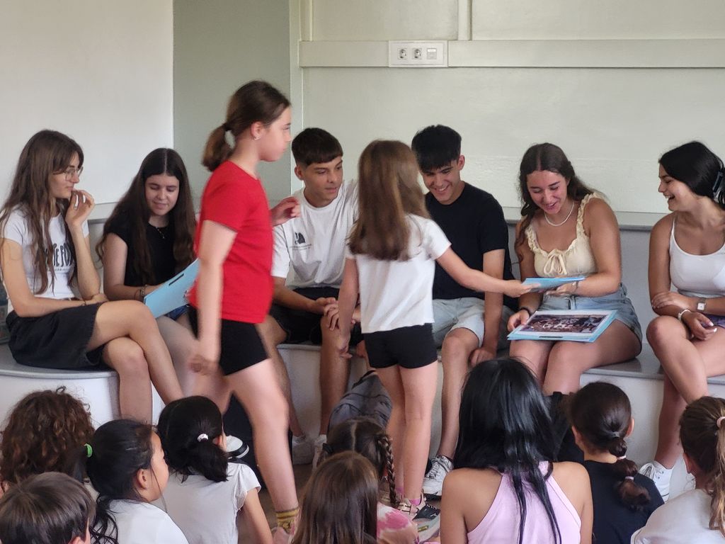 Avui dia 12 de juny els nostres alumnes participants en el projecte Sharing to Learn han fet una última visita als alumnes de primària del Trueta per acomiadar-se d’ells. Els han fet entrega d’uns dossiers, plegats de dibuixos personalitzats perquè els puguin recordar i es portin un detall de part seva.