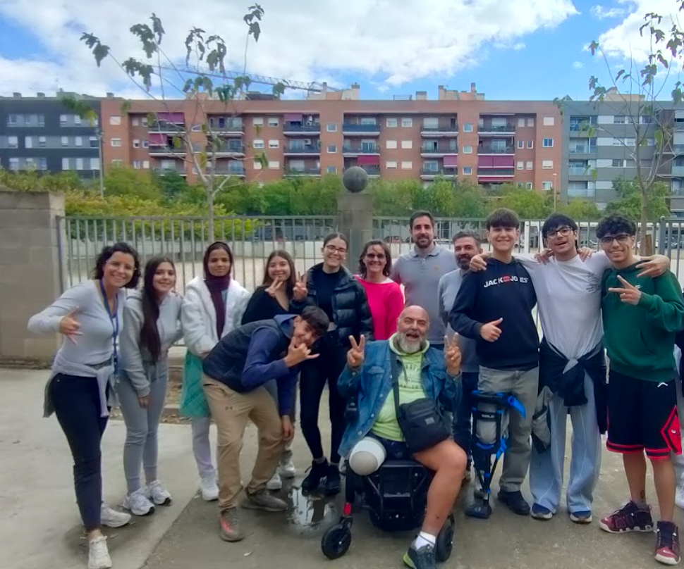 Després de la xerrada, van fer una activitat posant-se a la pell de persones amb diferents discapacitats físiques, utilitzant cadires de rodes, bastons per a cecs i altres adaptacions.