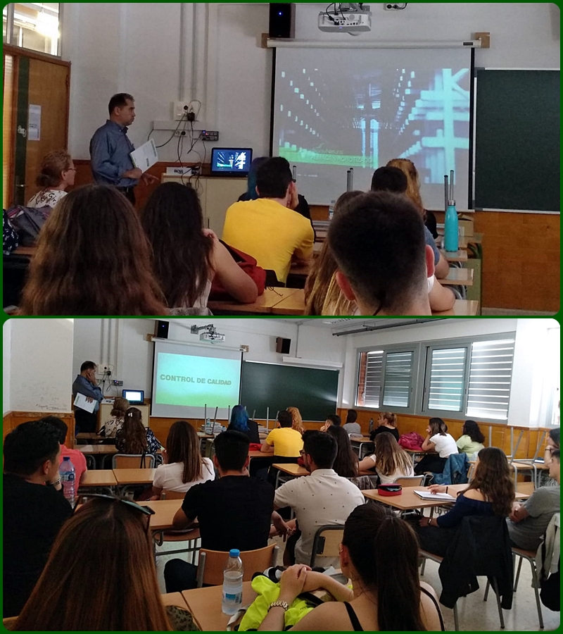 Vam estar presents els grups de 1r i 2n de Dietètica, a l’aula 0.3. Ens va presentar un vídeo amb les instal·lacions dels laboratoris a Soria i dels diferents processos per a obtenir la matèria primera amb que elaboren els seus productes.