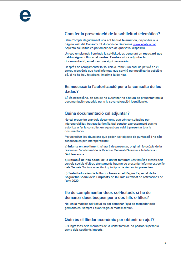 Un cop finalitzats els períodes de juny i setembre, s’estableix un període obert de presentació de sol·licituds per atendre situacions sobrevingudes i per a l’alumnat de nova incorporació. - Full informatiu per a les famílies interessades