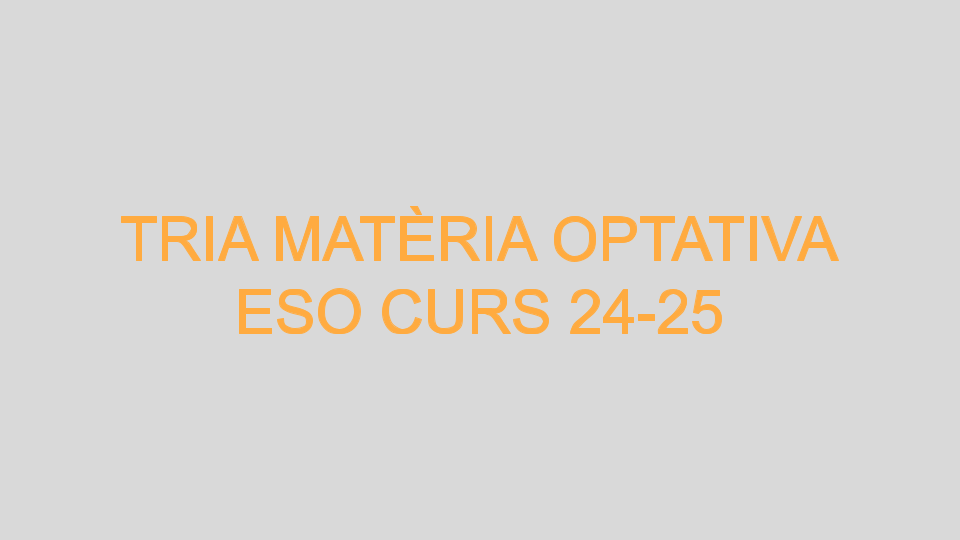 Elecció matèries OPTATIVES ESO CURS 24-25 admin08/07/24 Feu la tria de les matèries optatives de l’ESO del curs 24-25 de manera virtual. Fins el 18 de juliol.