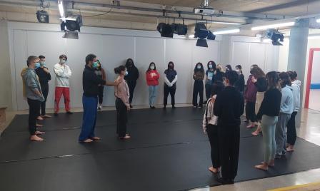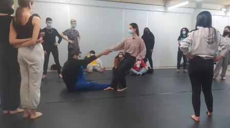 I per finalitzar el treball d’aquesta peça i dintre de la col·laboració del projecte “Escola d’Espectadors” amb Agost Produccions vam poder portar al cos, part d’aquests conceptes treballats, en una classe pràctica dirigida pel Guy Nader i la Maria Campos.