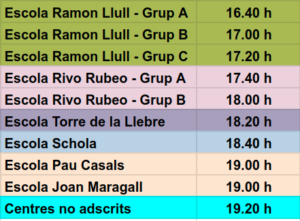 La Jornada de Portes Obertes d’ESO tindrà lloc dimecres, 2 de març, en l’horari que s’indica tot seguit, en funció de l’escola de procedència.
