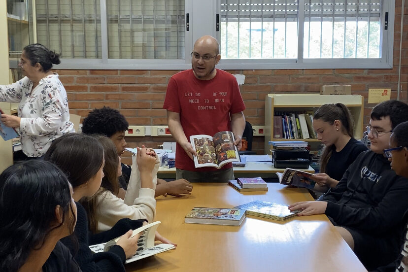 A l’optativa de Narrativa Visual de 2n d’ESO, l’alumnat ha viscut una experiència inspiradora a la biblioteca de l’institut. De la mà de l’Augusto Rodrigues, han explorat el fascinant món del còmic i els seus diferents estils segons el país d’origen: des del manga japonès, passant pel còmic americà, fins a la novel·la gràfica europea i contemporània.