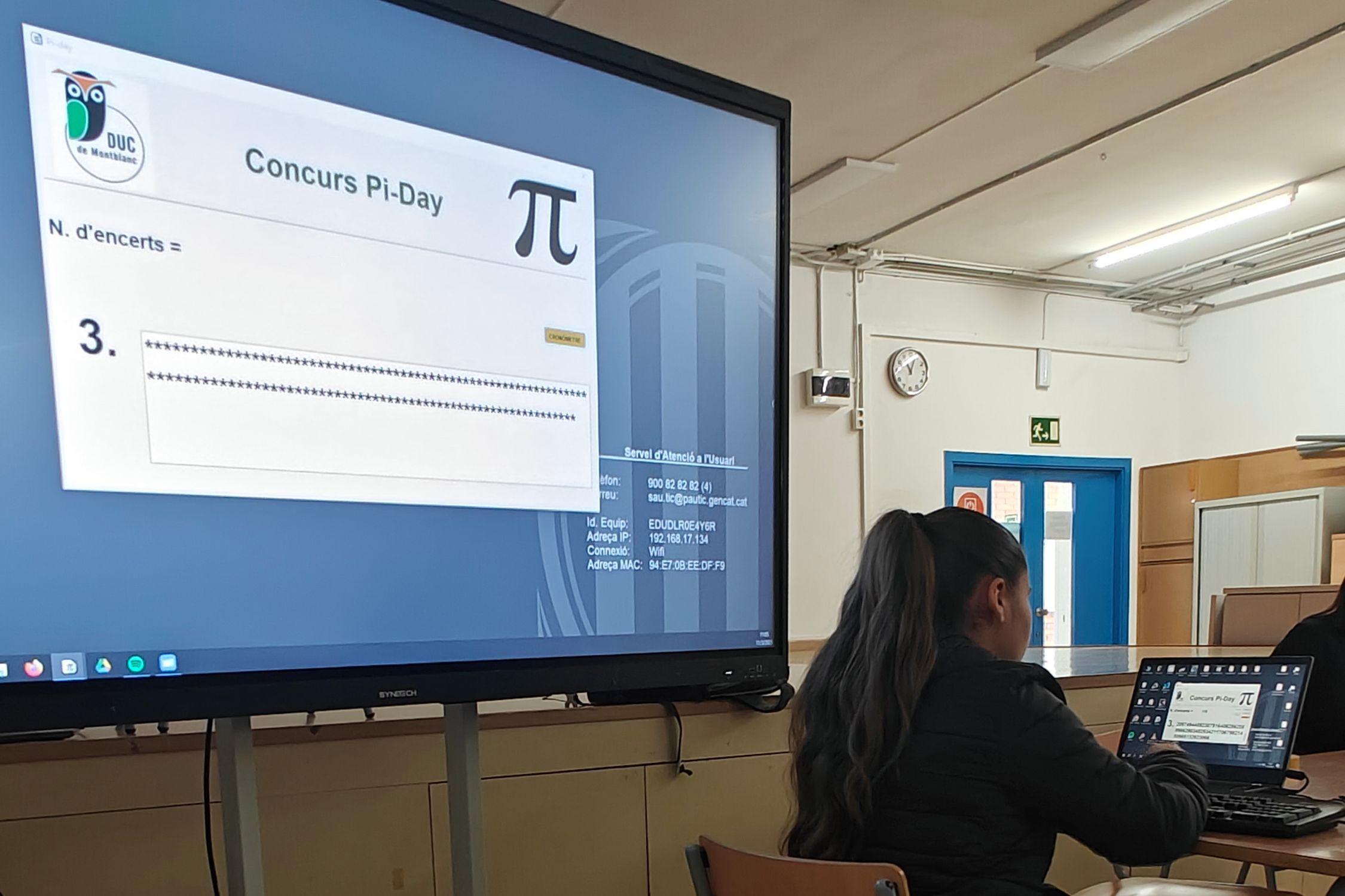 Aquest dimarts, 11 de març, vam celebrar a la Sala d’Actes la semifinal del concurs del nombre Pi. Els i les participants de tots els nivells del Duc havien de memoritzar i introduir el màxim nombre de xifres decimals de π en un programa informàtic.