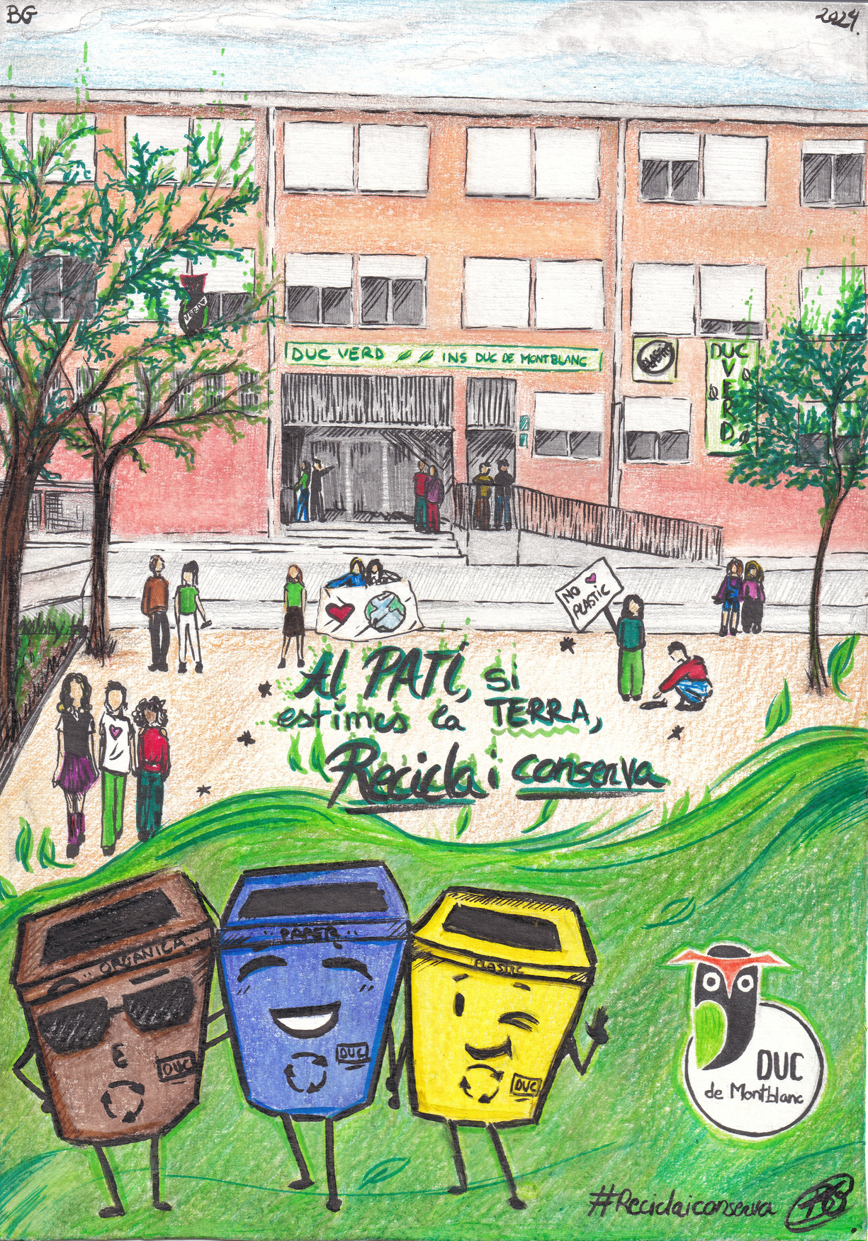 El divendres, 28 de febrer, coincidint amb la celebració del Carnestoltes, es van fer públics els dissenys guanyadors del concurs de cartells “Al pati recollim i reciclem”, organitzat per l’equip d’Escola Verda del Duc.