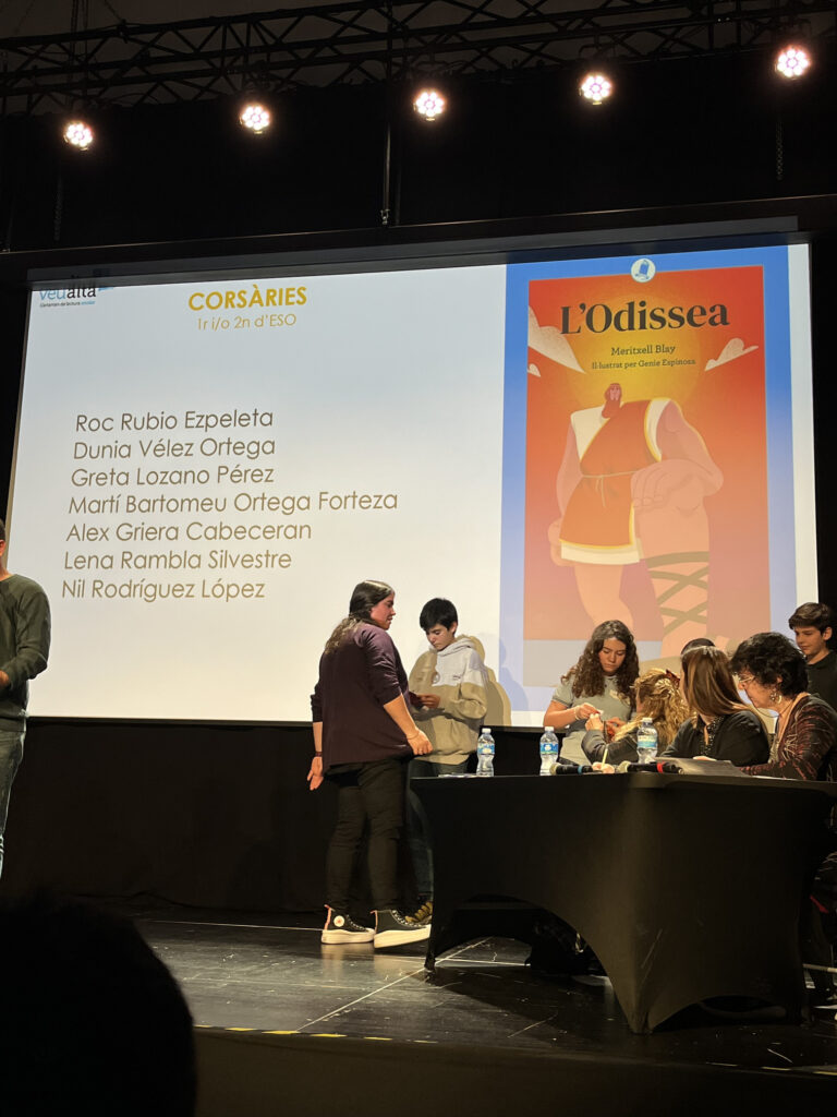 En la categoria de 1r i 2n d’ESO -Les corsàries- en Roc Rubio ha llegit un fragment de l’adaptació de l’Odissea que ha fet Meritxell Blay. En la categoria següent -La tropa de corsàries-, hem pogut sentir la tríada d’alumnes formada per l’Elena Fontanals, la Nahiara Vila i en Santiago Pannunzio llegint un fragment de L’evolució de la Calpurnia Tate, de Jacqueline Kelly. Per últim, en Lukas Bolivar Arias, en la categoria Timoners, ha llegit un fragment d’Anticlub, d’Àngel Burgas. Els cinc alumnes han gaudit d’allò més de la jornada, malgrat que no s’han pogut classificar per a la final de Barcelona.