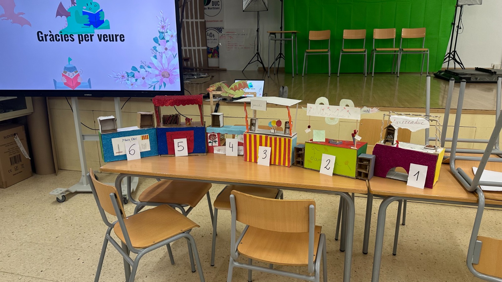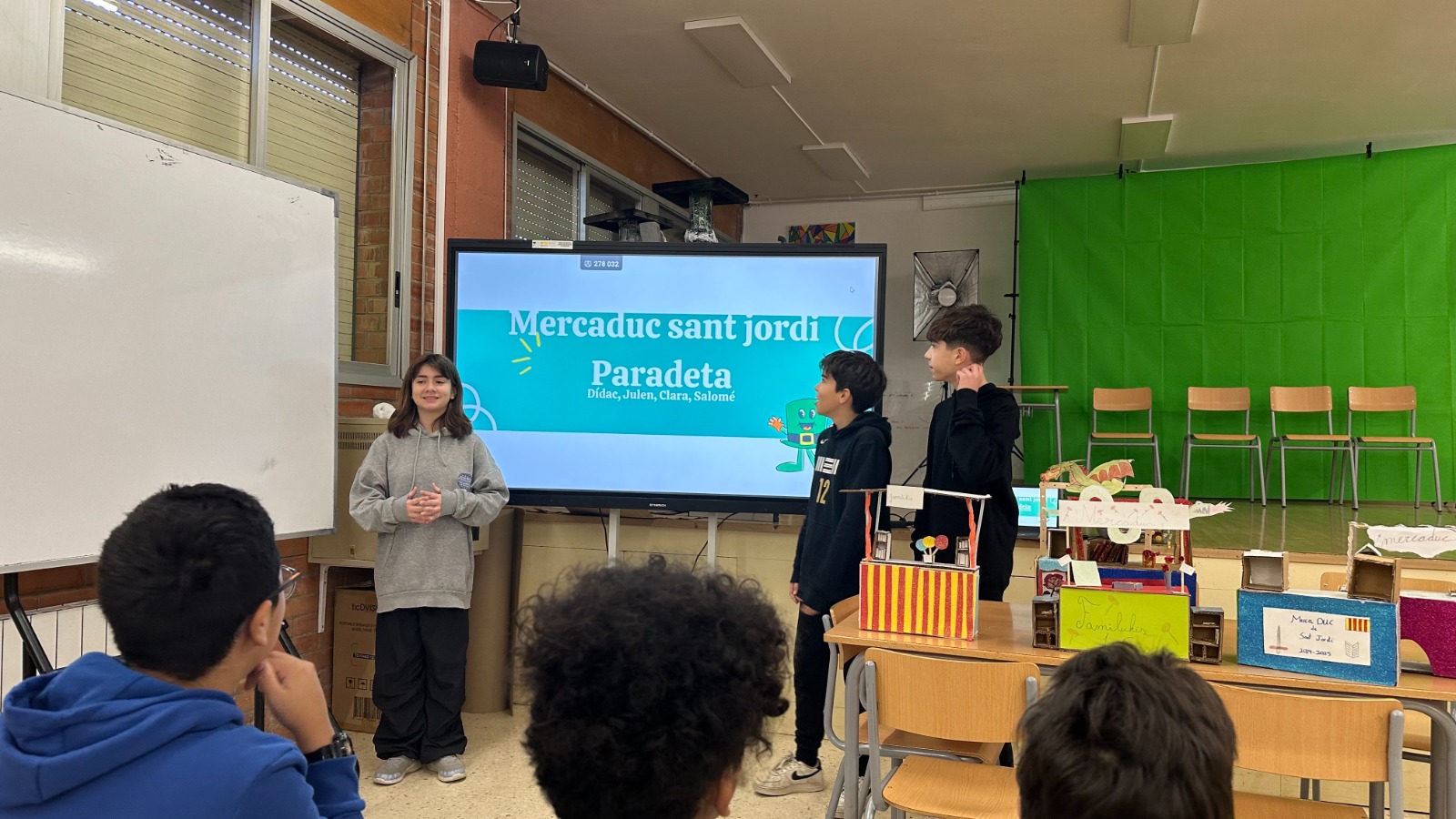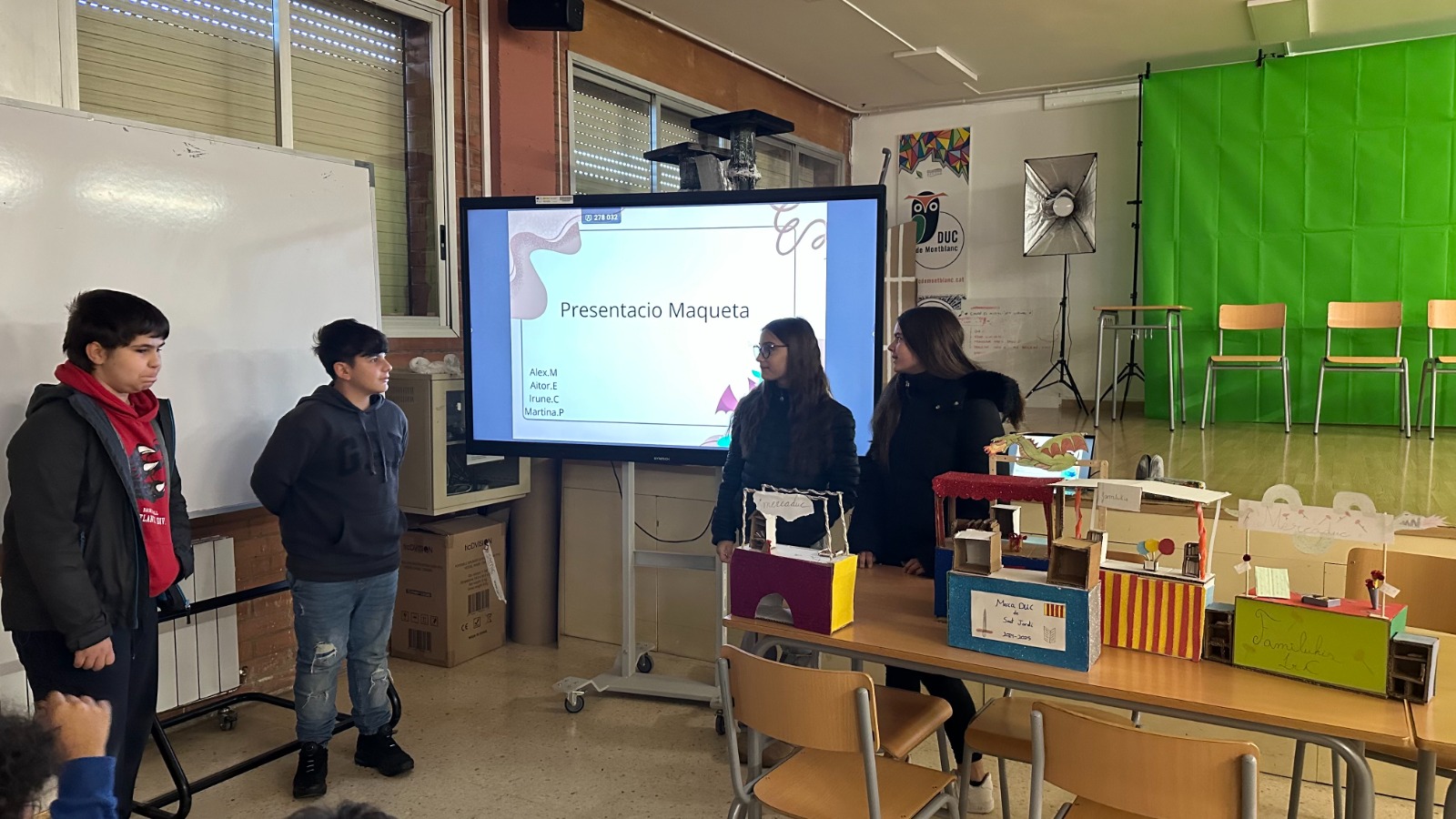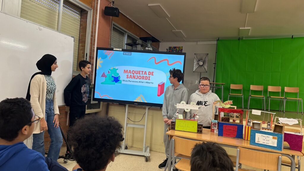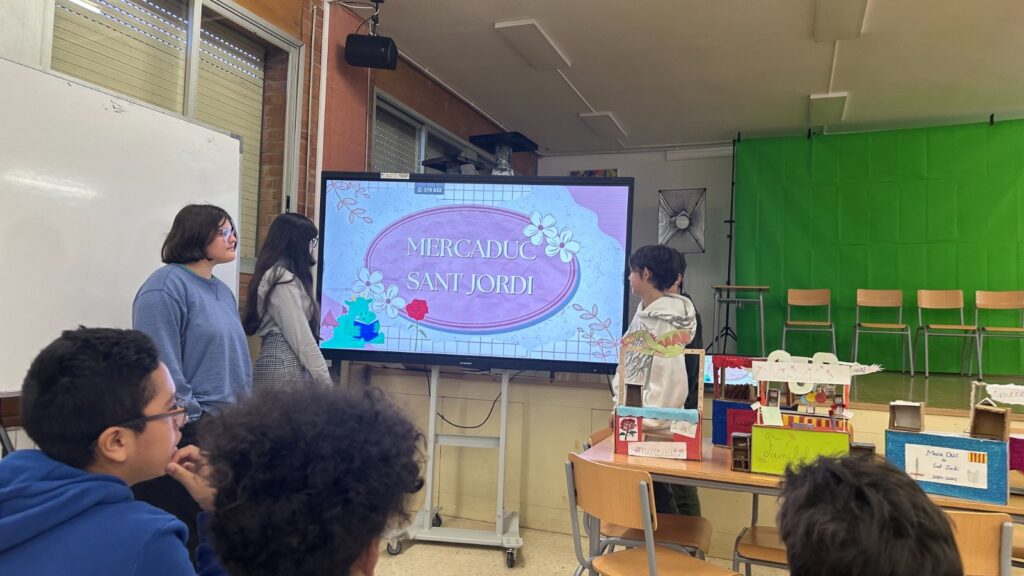 L’alumnat dels grups A, B i C de 1r d’ESO treballa aquests dies el projecte “MercaDUC de St. Jordi”. Aquesta setmana, ha finalitzat la fase de disseny i construcció de les maquetes a escala 1:5 de les paradetes per a fira d’intercanvi que s’organitzarà a la diada de Sant Jordi.