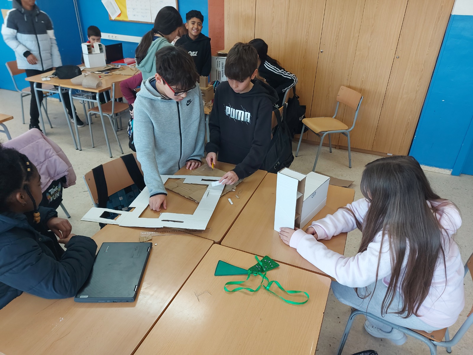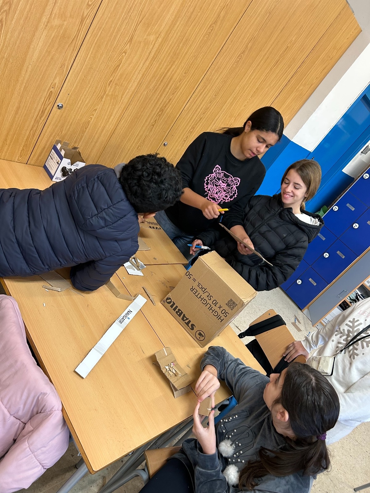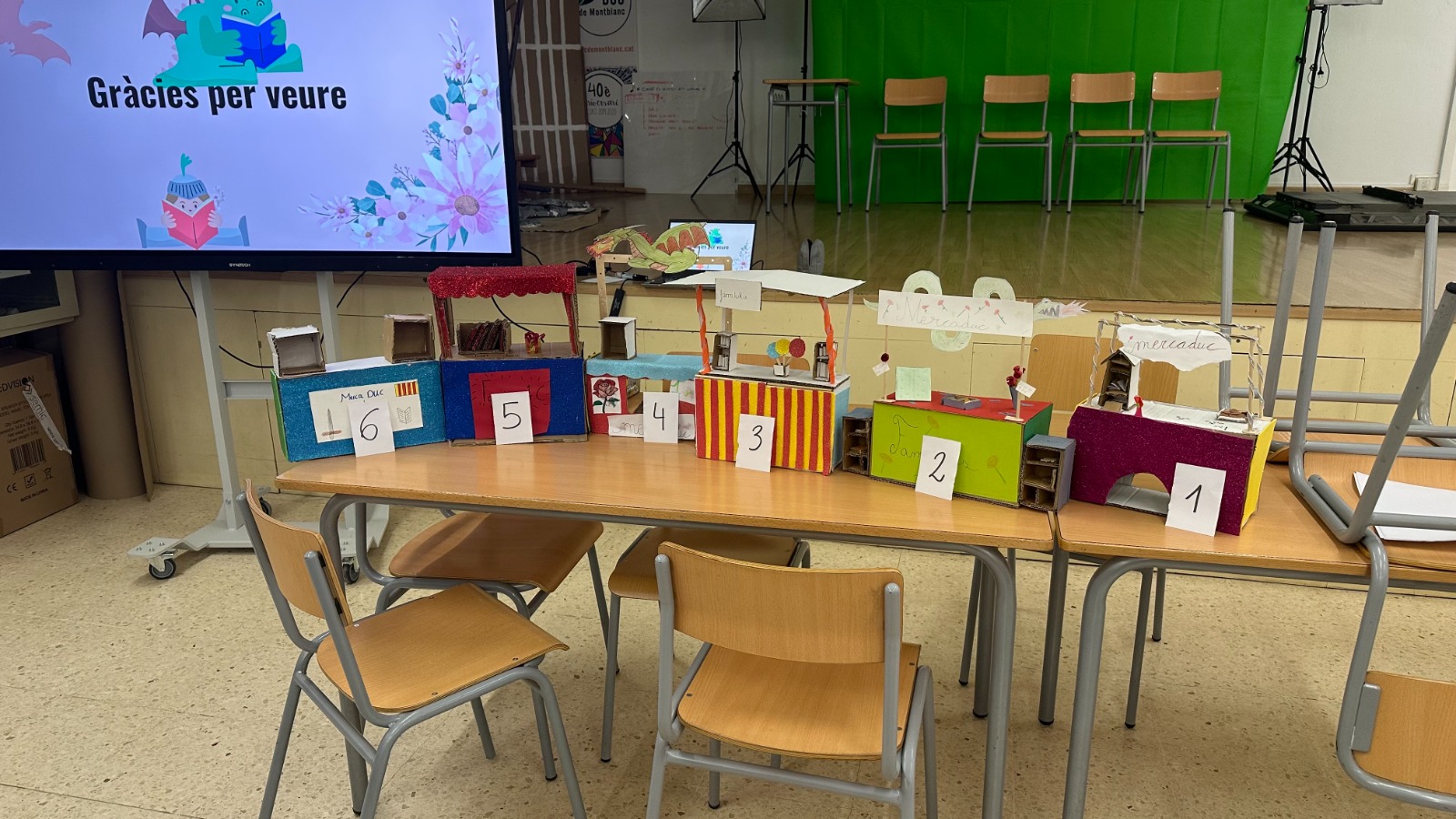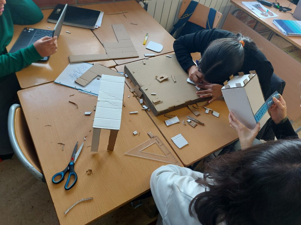 L’alumnat dels grups A, B i C de 1r d’ESO treballa aquests dies el projecte “MercaDUC de St. Jordi”. Aquesta setmana, ha finalitzat la fase de disseny i construcció de les maquetes a escala 1:5 de les paradetes per a fira d’intercanvi que s’organitzarà a la diada de Sant Jordi.