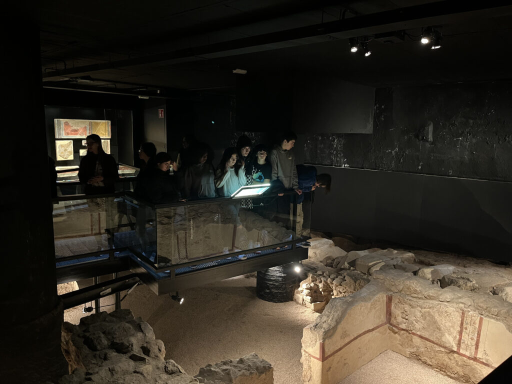 Els i les estudiants van veure espais tan representatius com les termes romanes i el decumanus, conservats al subsol de l’edifici; i  van poder passejar per algunes edificacions i carrers propers al fòrum. D’aquesta manera, els i les alumnes van poder fer-se una idea molt més clara de com era la vida quotidiana durant l’època romana.