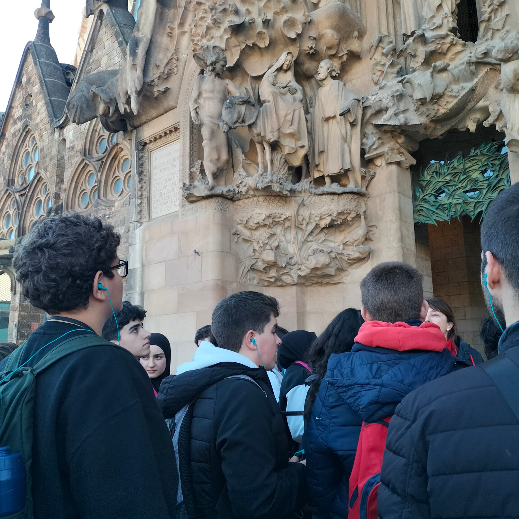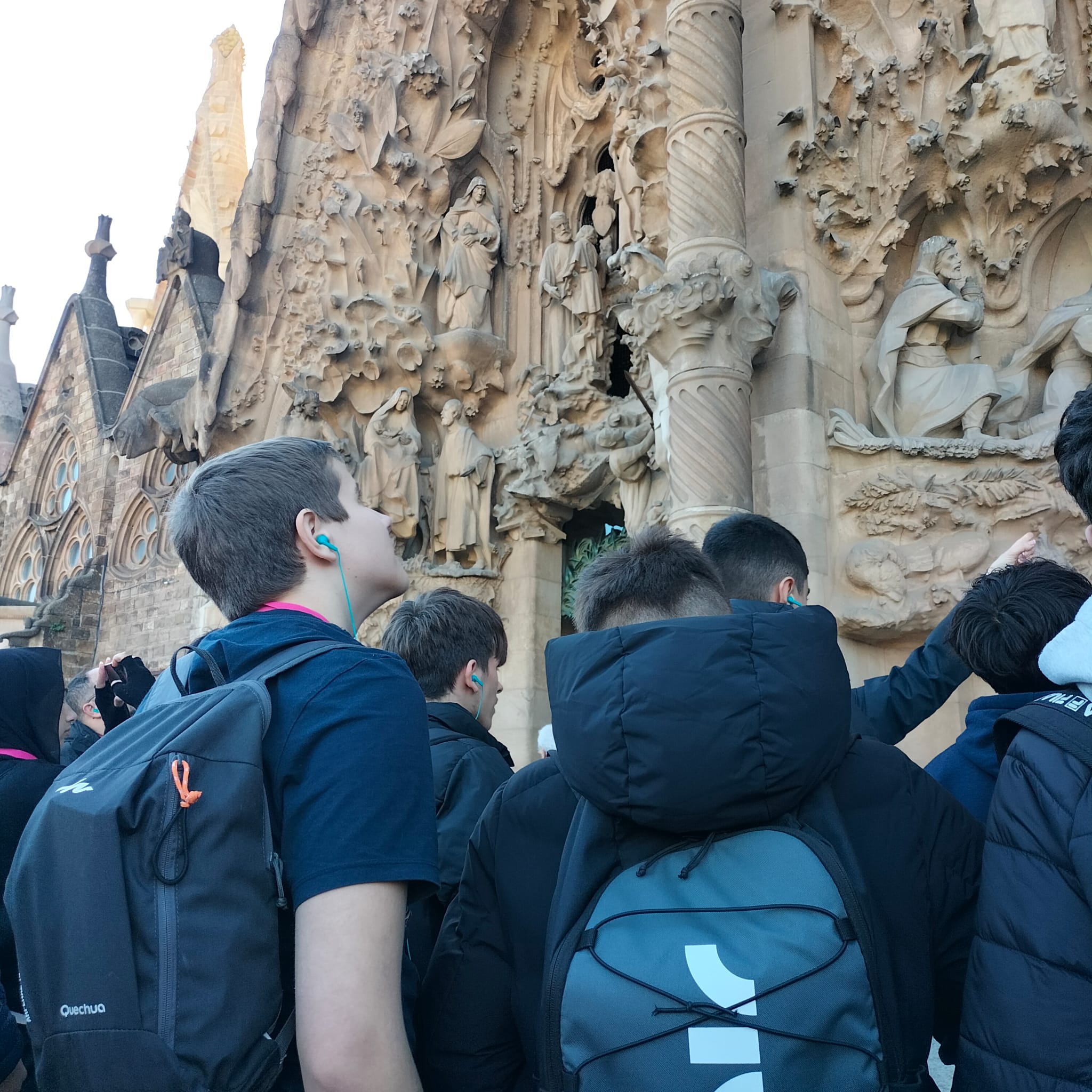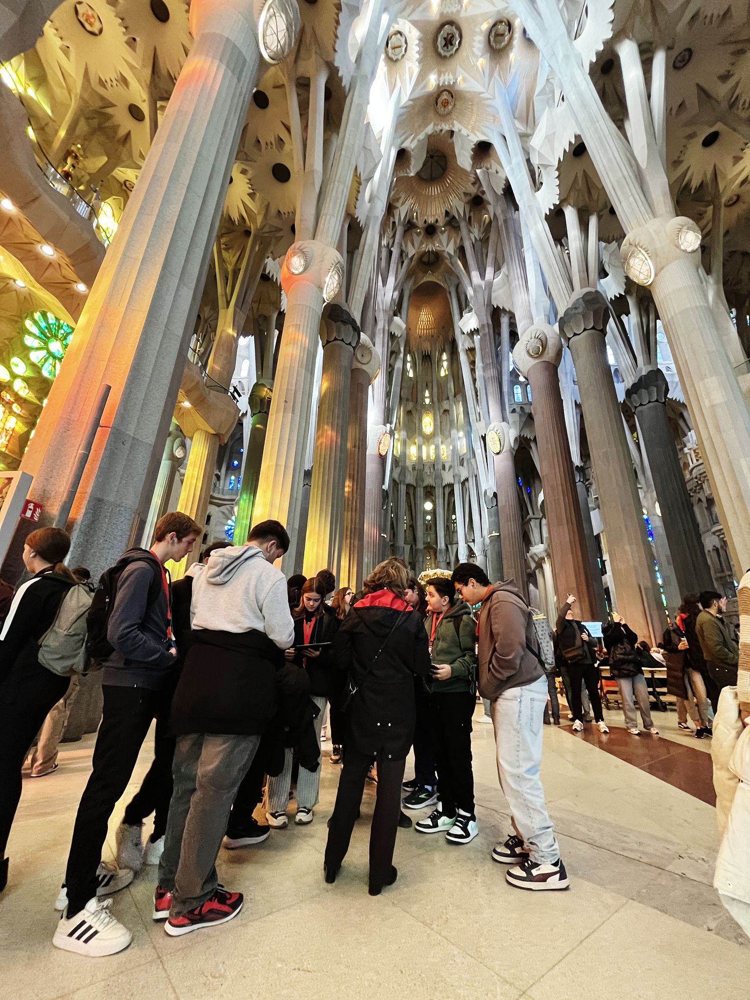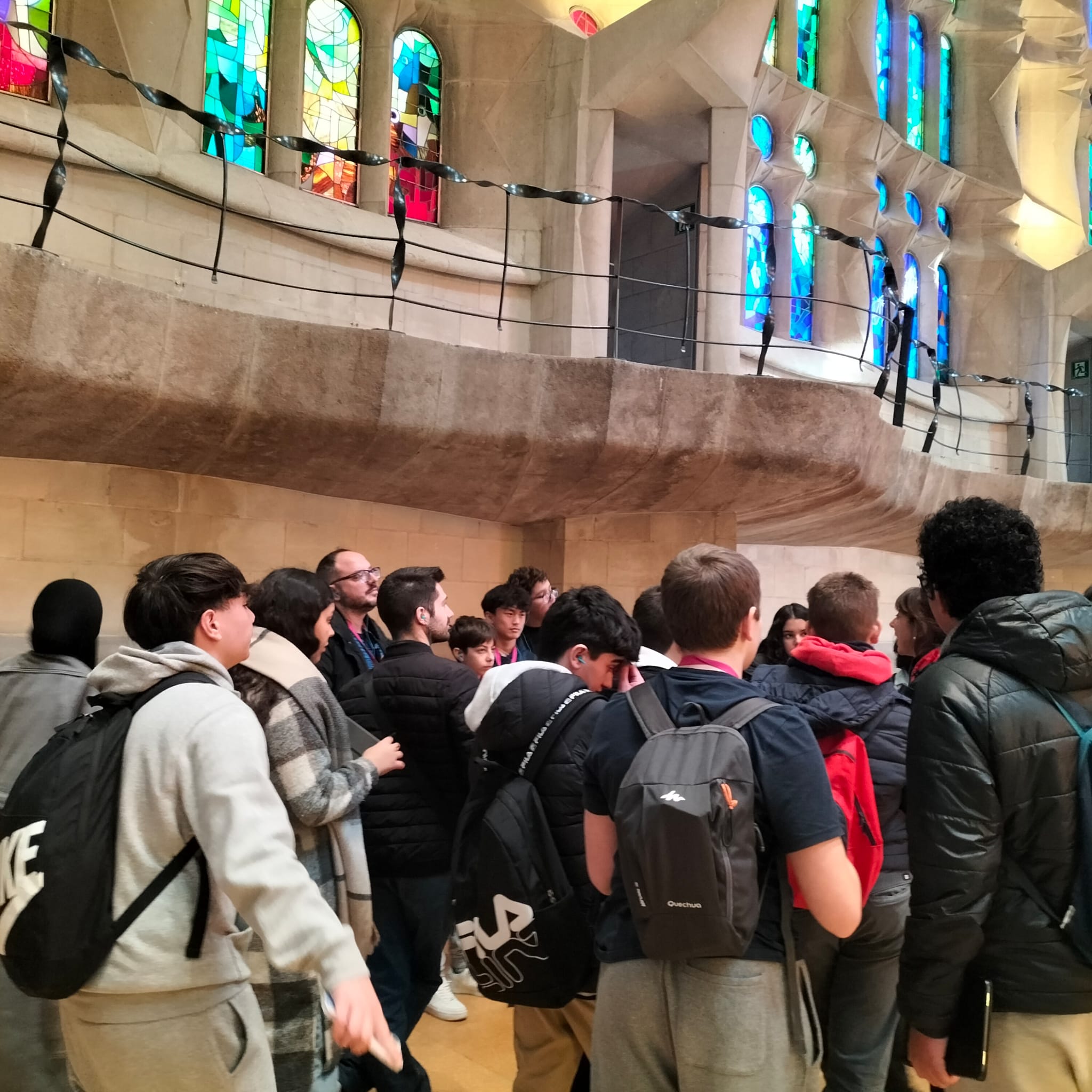 Durant la sortida, l’alumnat ha pogut admirar de prop la majestuositat de la basílica i observar com els arcs catenaris s’integren en la seva estructura. Els guies han acompanyat als alumnes en un recorregut que va explicar els principis arquitectònics darrere d’aquesta tècnica, que imita la forma d’una cadena penjant i és fonamental en l’obra de Gaudí.