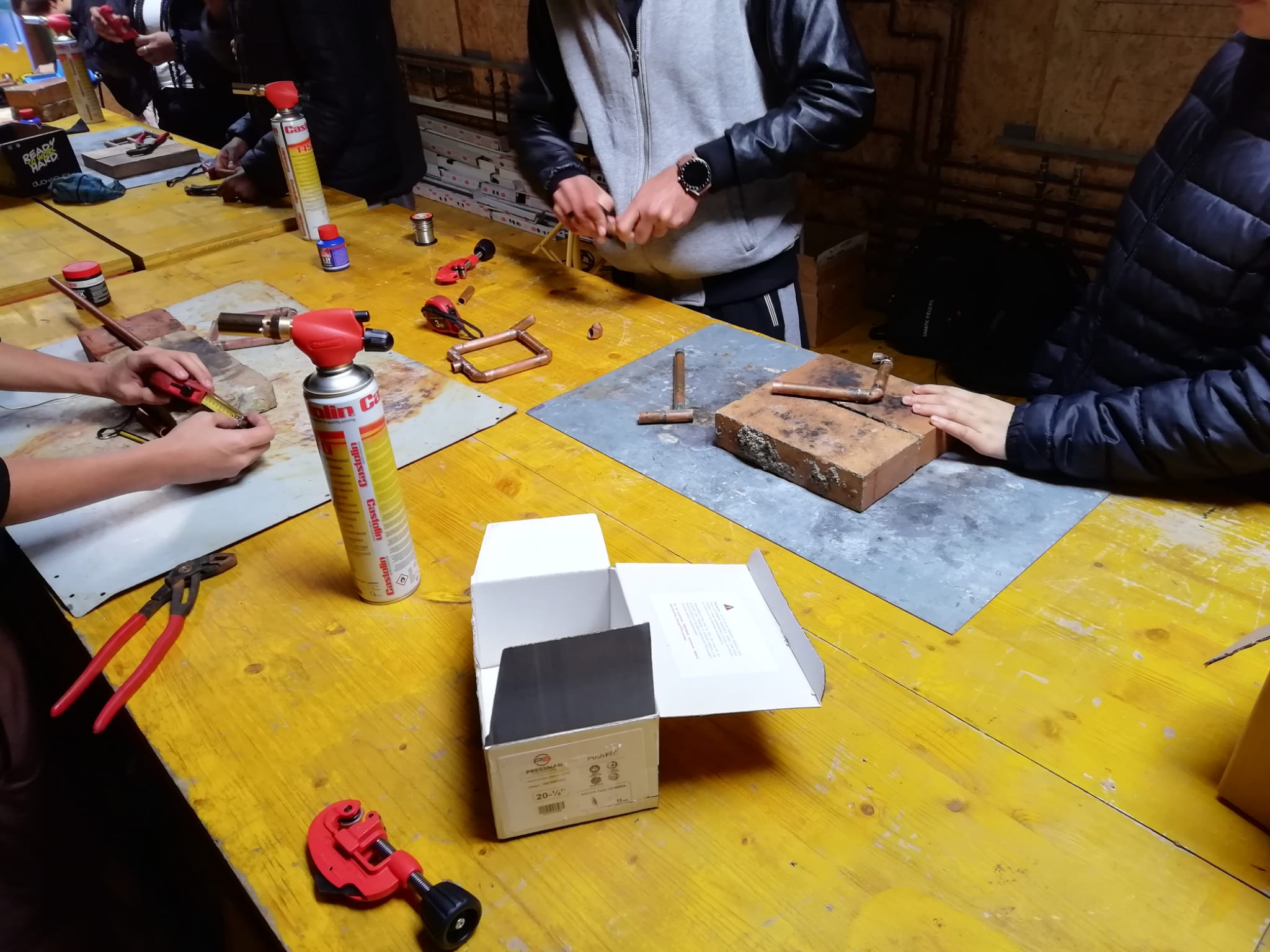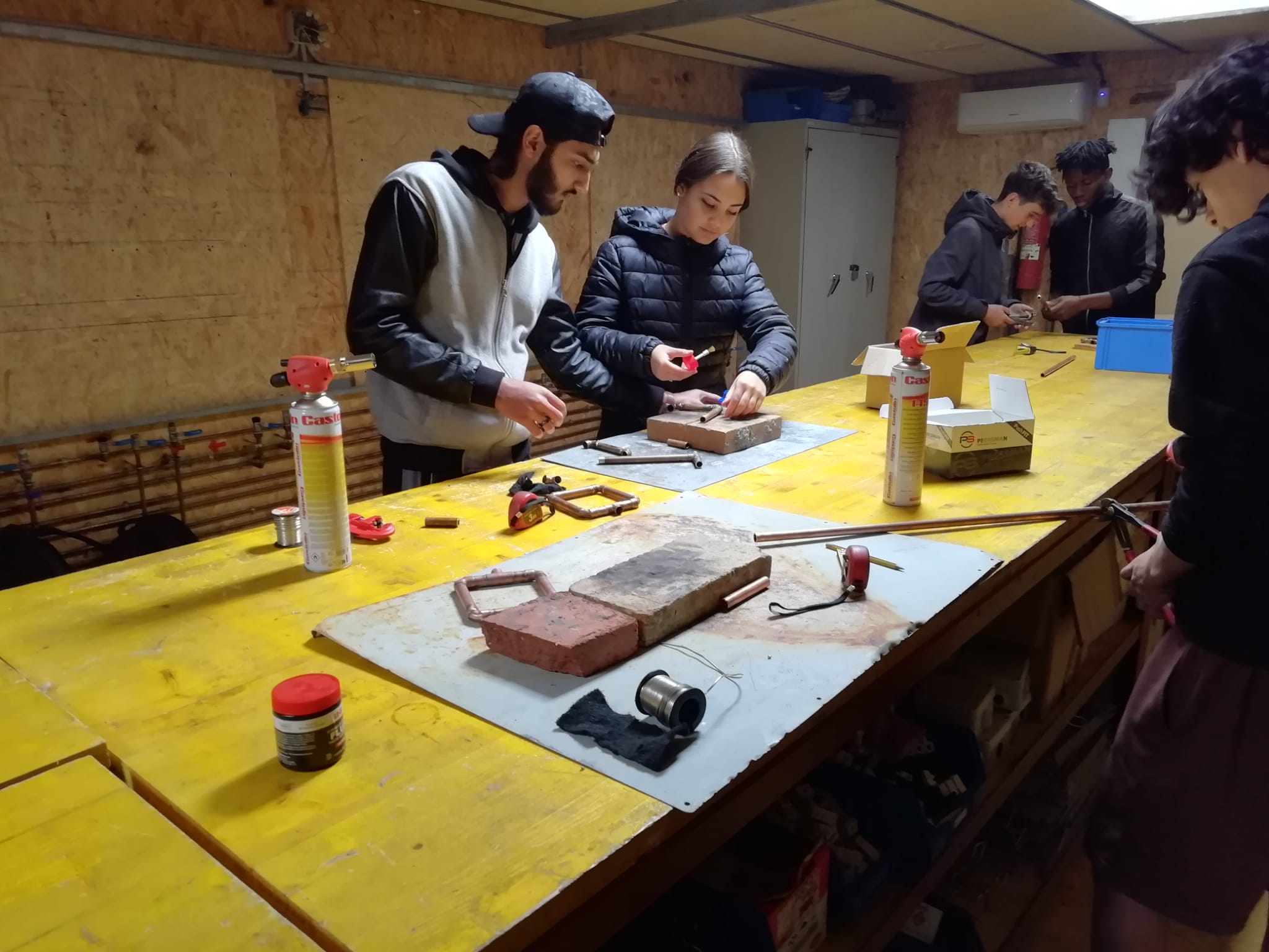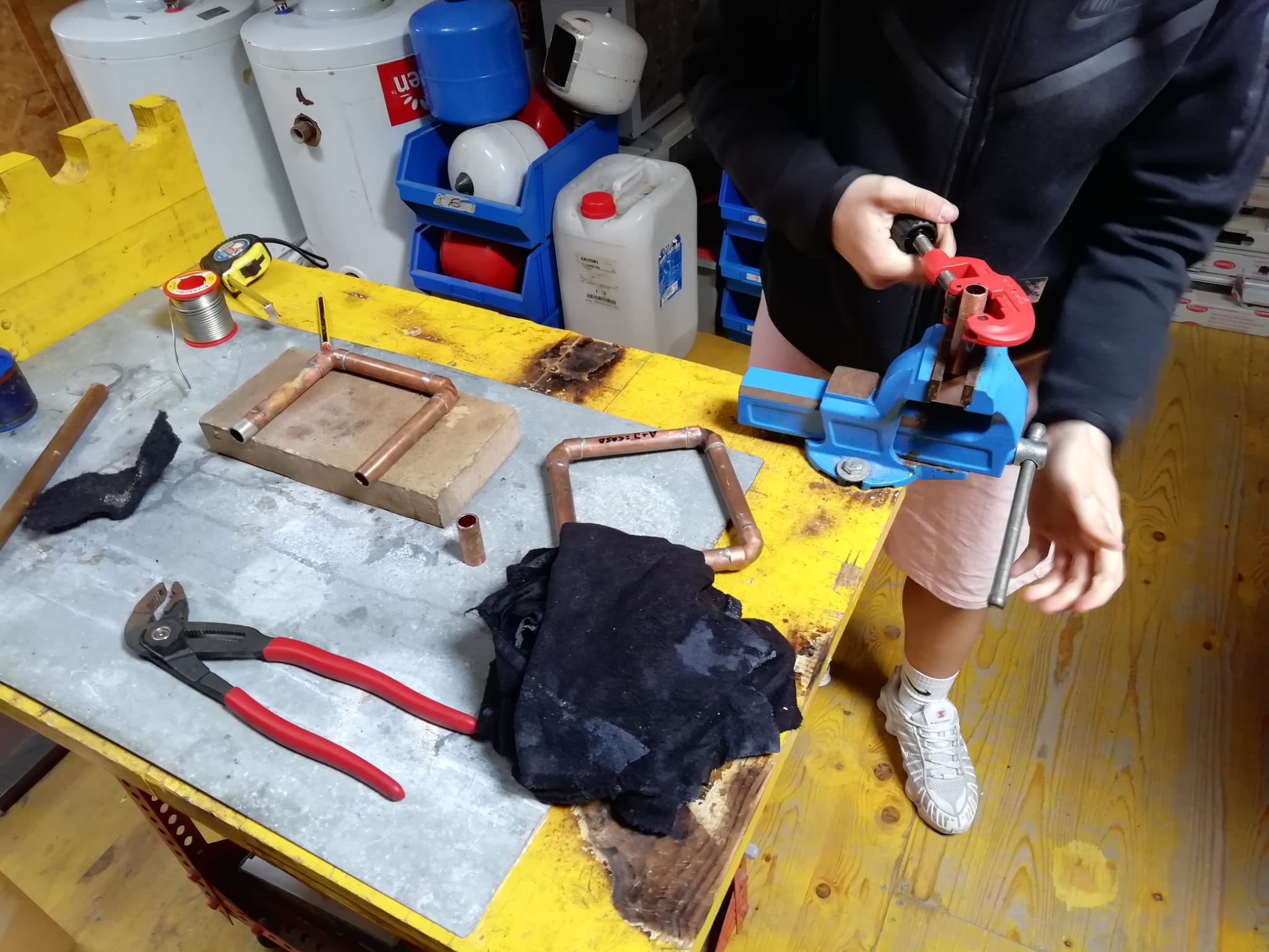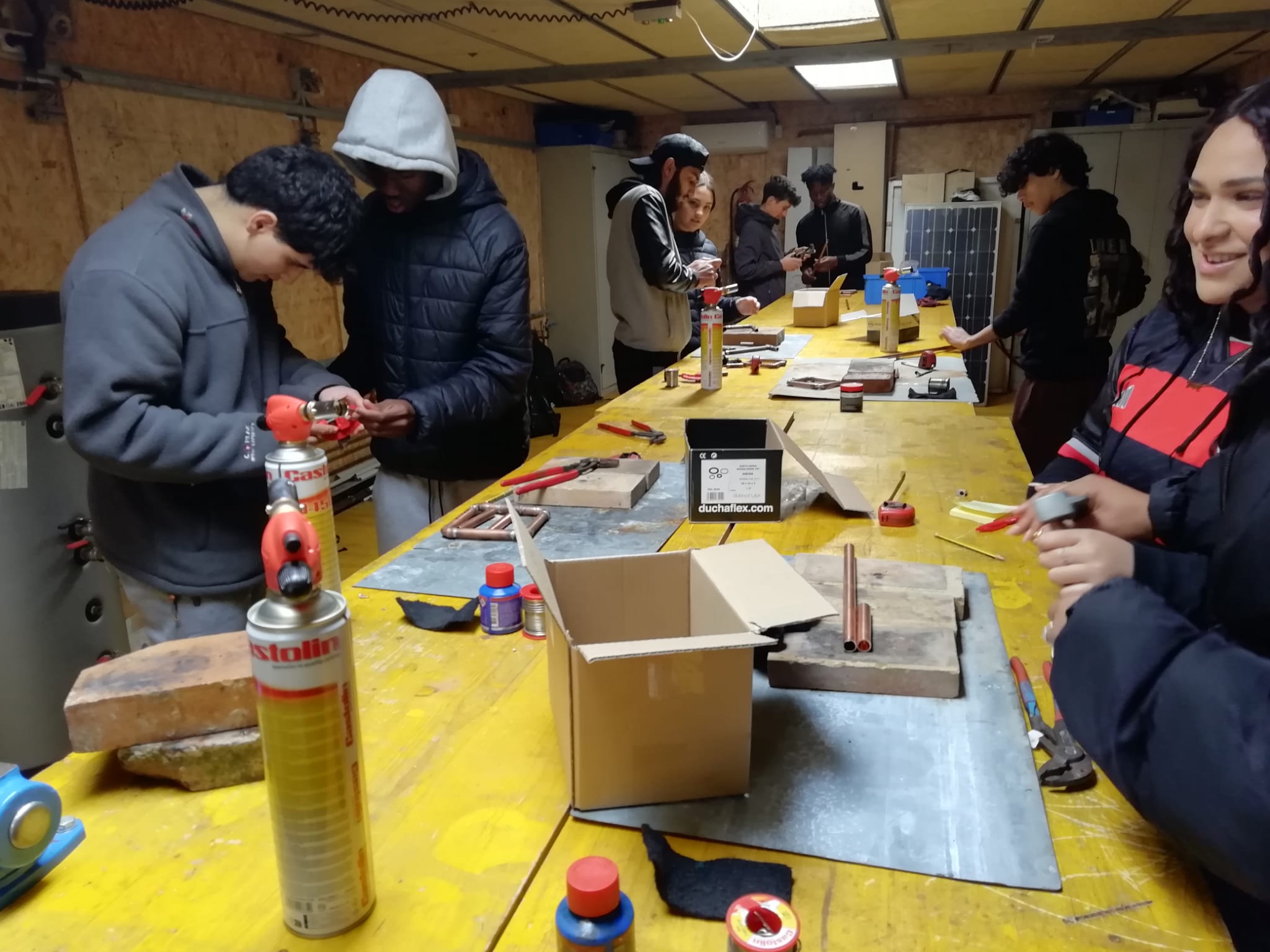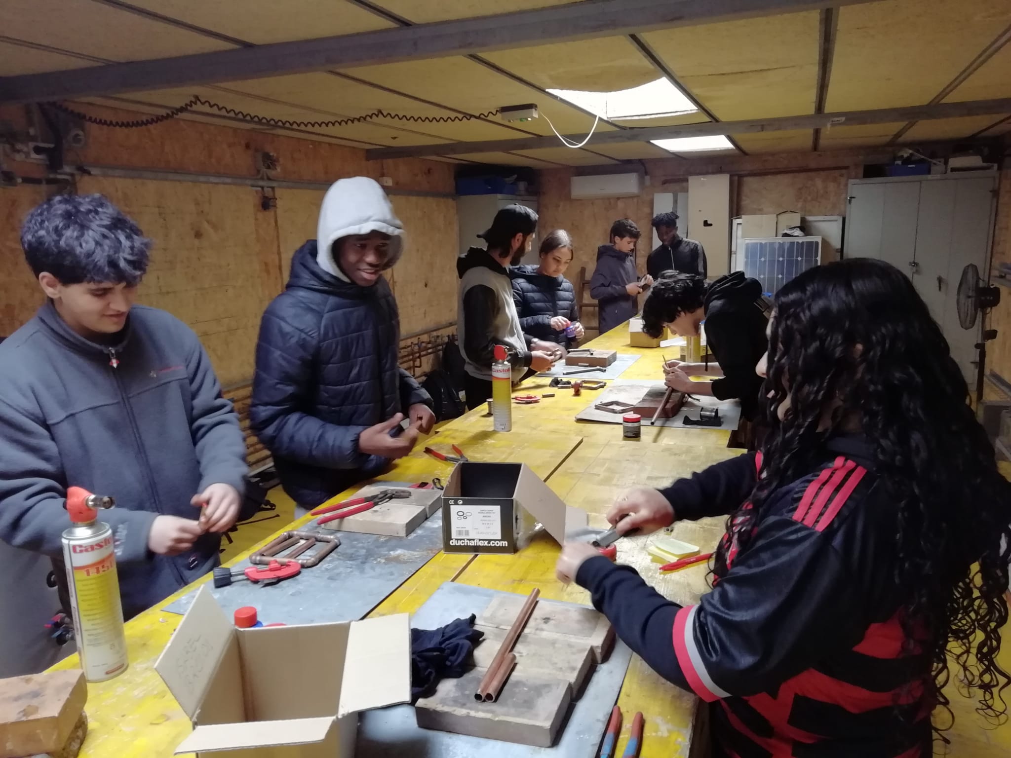 En aquestes sessions, l’alumnat d’informàtica ha treballat amb una maqueta de casa domotitzada (Smart Home), practicant la programació de sensors per a l’automatització d’una casa. Per la seva banda, el de lampisteria ha après a fer soldadura, una habilitat clau en aquest ofici.