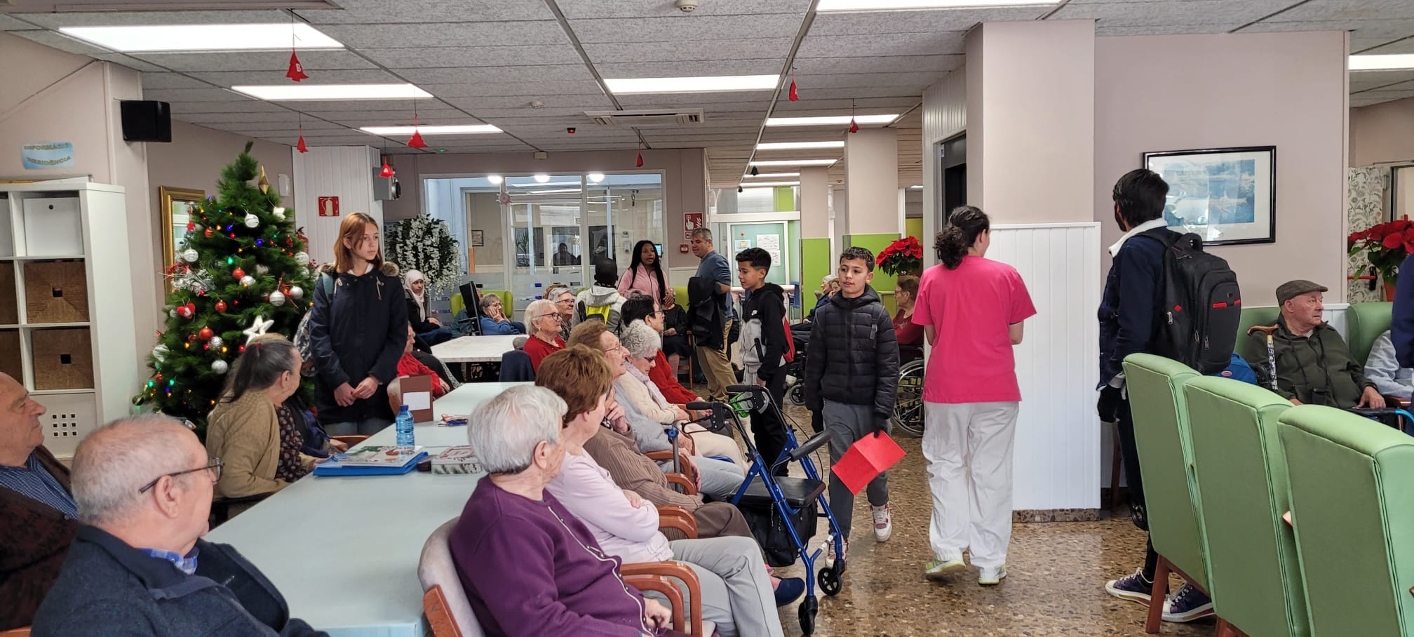 El passat dilluns 16 de desembre, l’alumnat de l’aula d’acollida va fer una visita molt especial a la residència de gent gran El Cel de Rubí. La setmana prèvia, per preparar la visita, els i les estudiants havien preparat postals amb bons desitjos, que van lliurar personalment als residents.