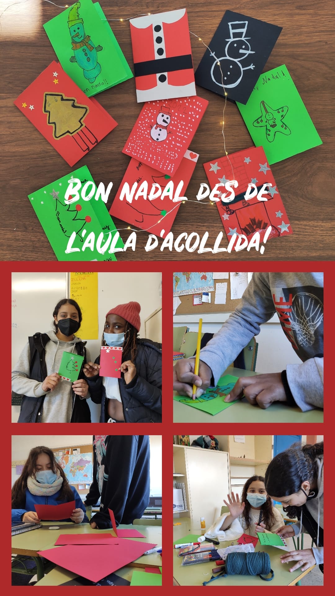 L’alumnat de l’Aula d’Acollida del Duc de Montblanc, juntament amb altres alumnes de centres educatius de Rubí, ha participat en el projecte de creació de postals de Nadal per enviar-les a residències del municipi.