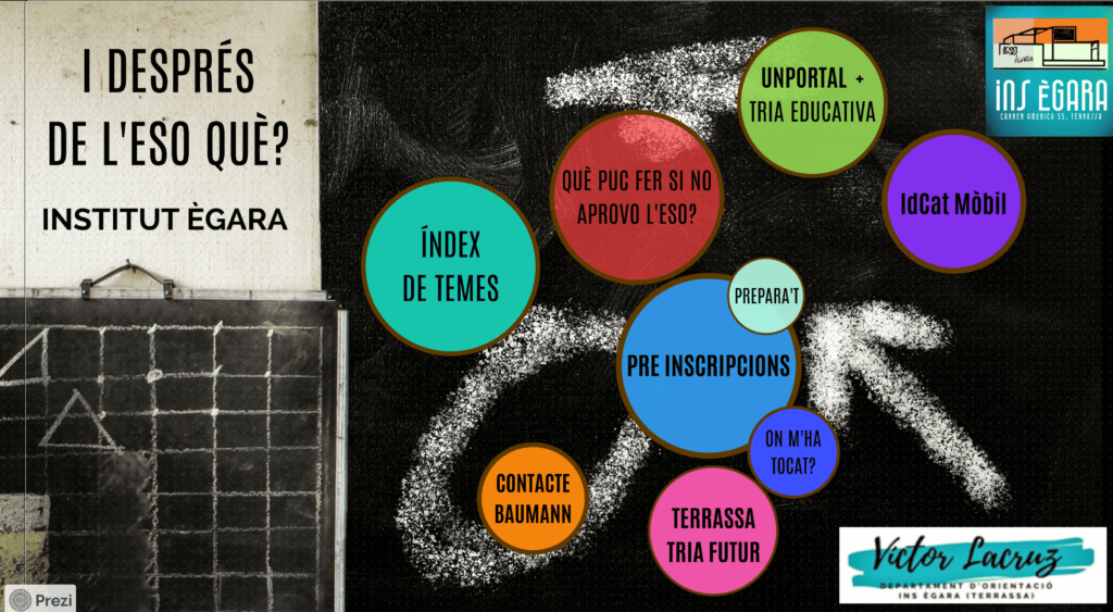 La intenció és posar-vos al dia sobre què estem treballant amb l’alumnat de 4t, en quin moment de l’orientació ens trobem i sobretot que les famílies estigueu al cas de tot el procés que caldrà fer per les preinscripcions i les matrícules del curs vinent.