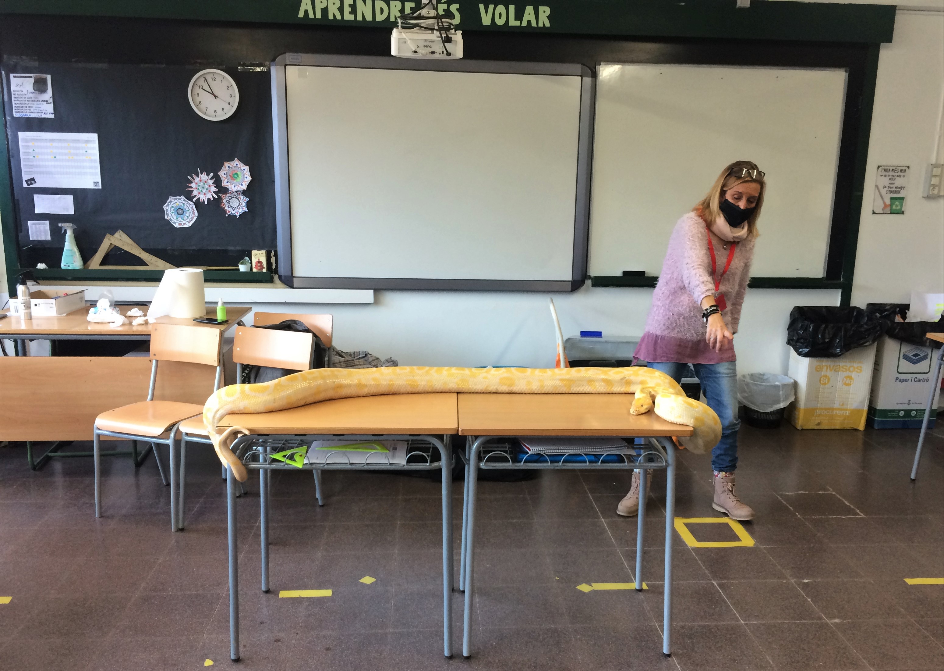 Els alumnes van fer un taller de rèptils i amfibis amb AULANATURA. Ho van fer per grups tutoria, cadascú a la seva aula per tal d’extremar les precaucions, evitant un excés d’alumnes en l’activitat i poder mantenir la distància aconsellada entre alumnes.