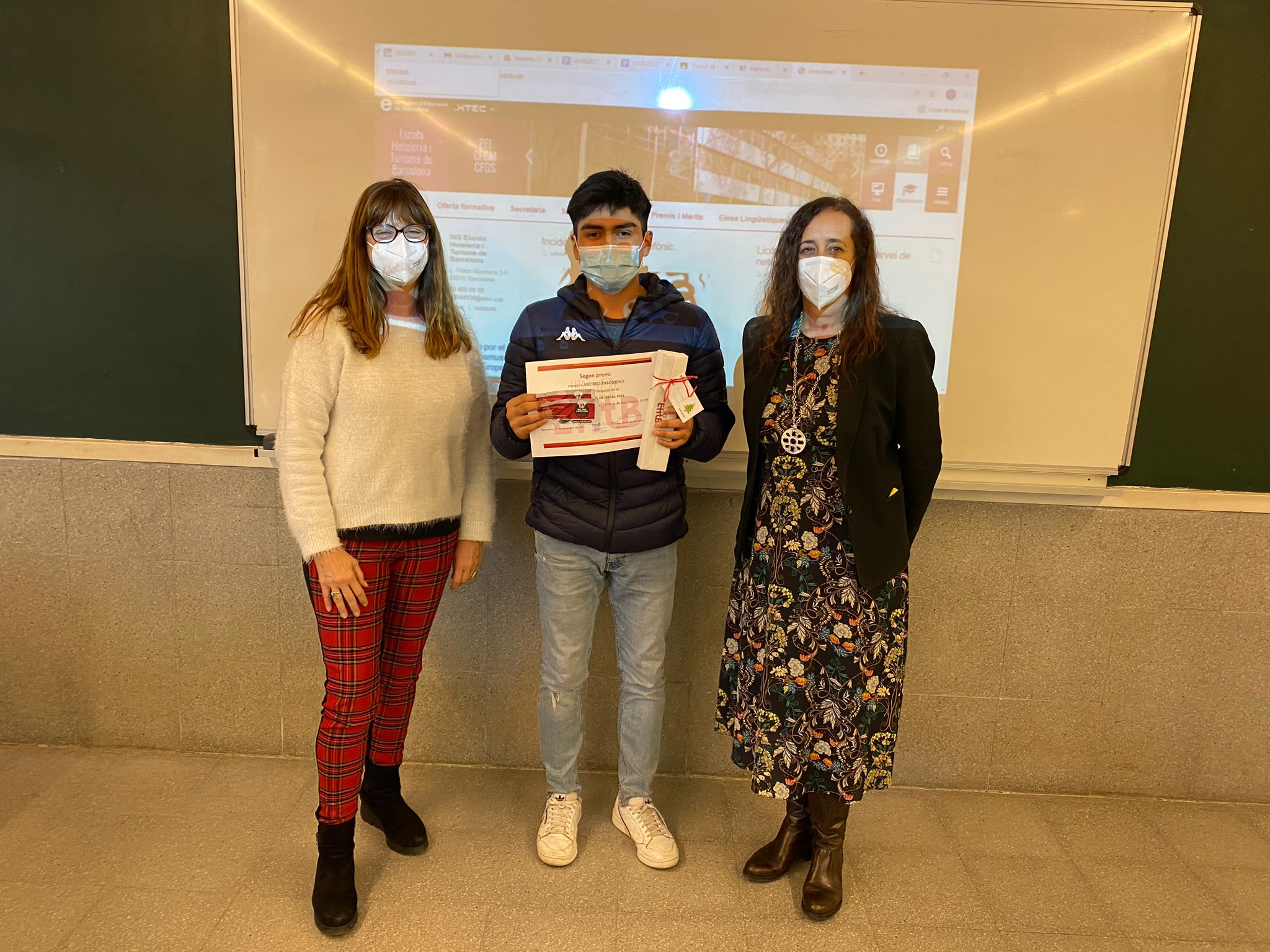 S’ha fet lliura lliurament de premis del Concurs de la Postal de Nadal 2021. L’Ana Vernet, directora del centre, i en Ferran Bolaños, coordinador d’Activitats i Serveis, han entregat al Christian López, de 2n A del CFGS de Direcció de Serveis, el primer premi per la Postal de Nadal.
