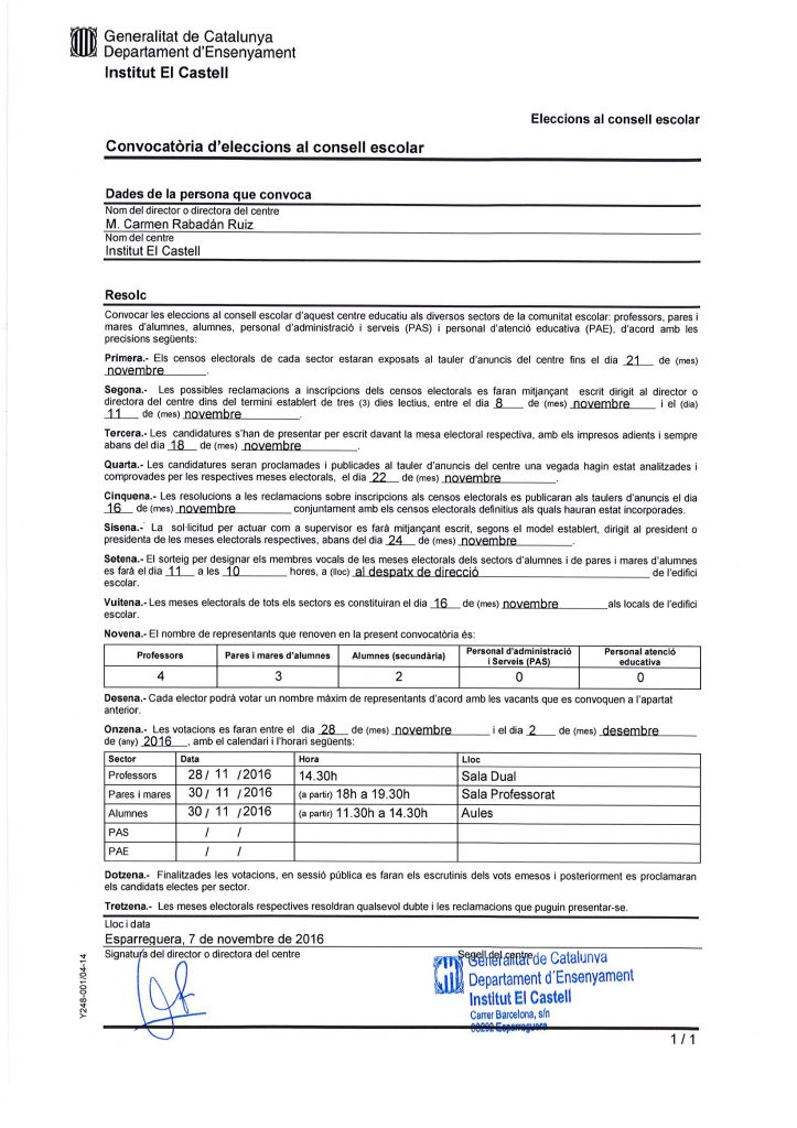 RESULTATS ELECCIONS CONSELL ESCOLAR 2016