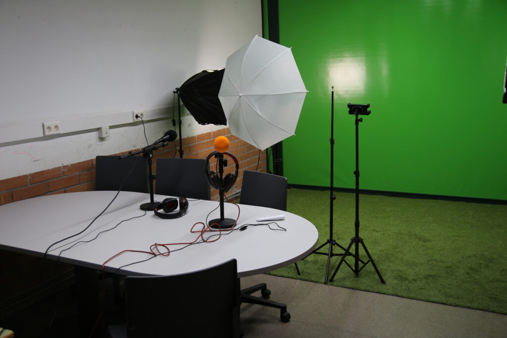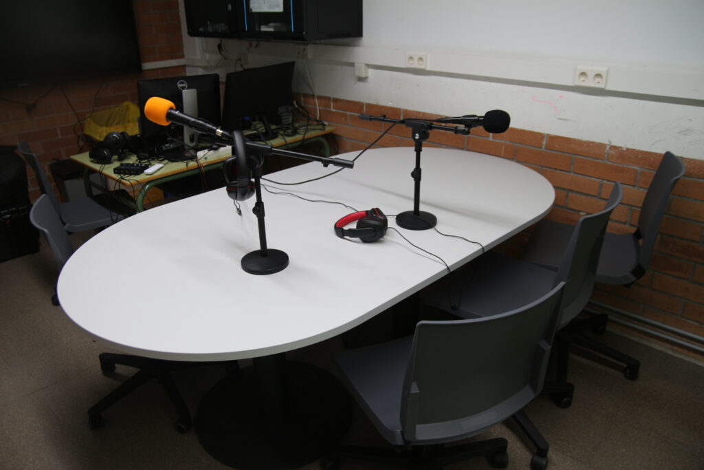 - Elements d’àudio: L’espai disposa d’un equipament d’àudio professional que inclou microfonia especialitzada, sistemes de monitoratge i taules de mescles amb connexió USB. Els alumnes compten amb gravadores portàtils i amplificadors d’alta fidelitat per garantir enregistraments impecables i un postprocessament de so de qualitat.